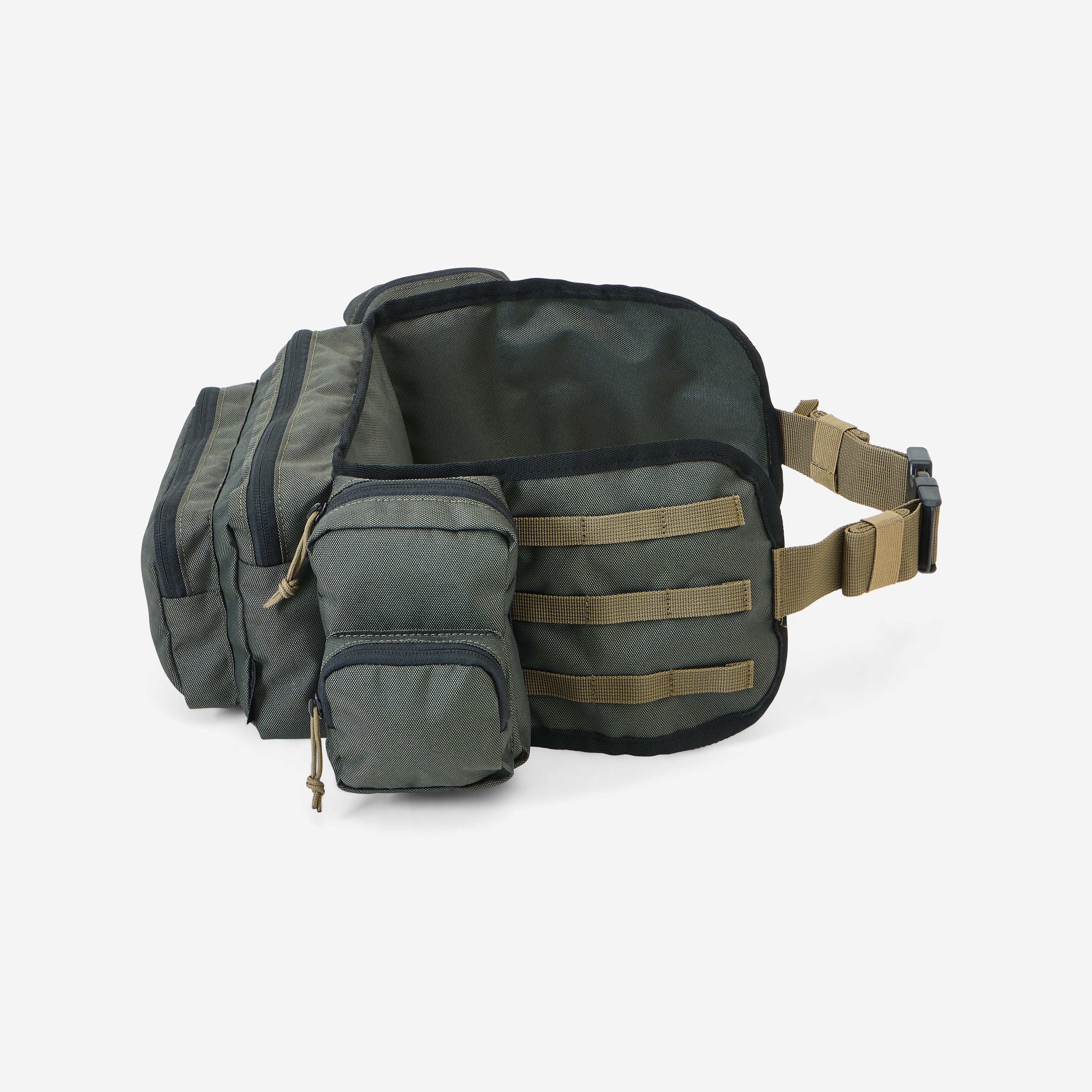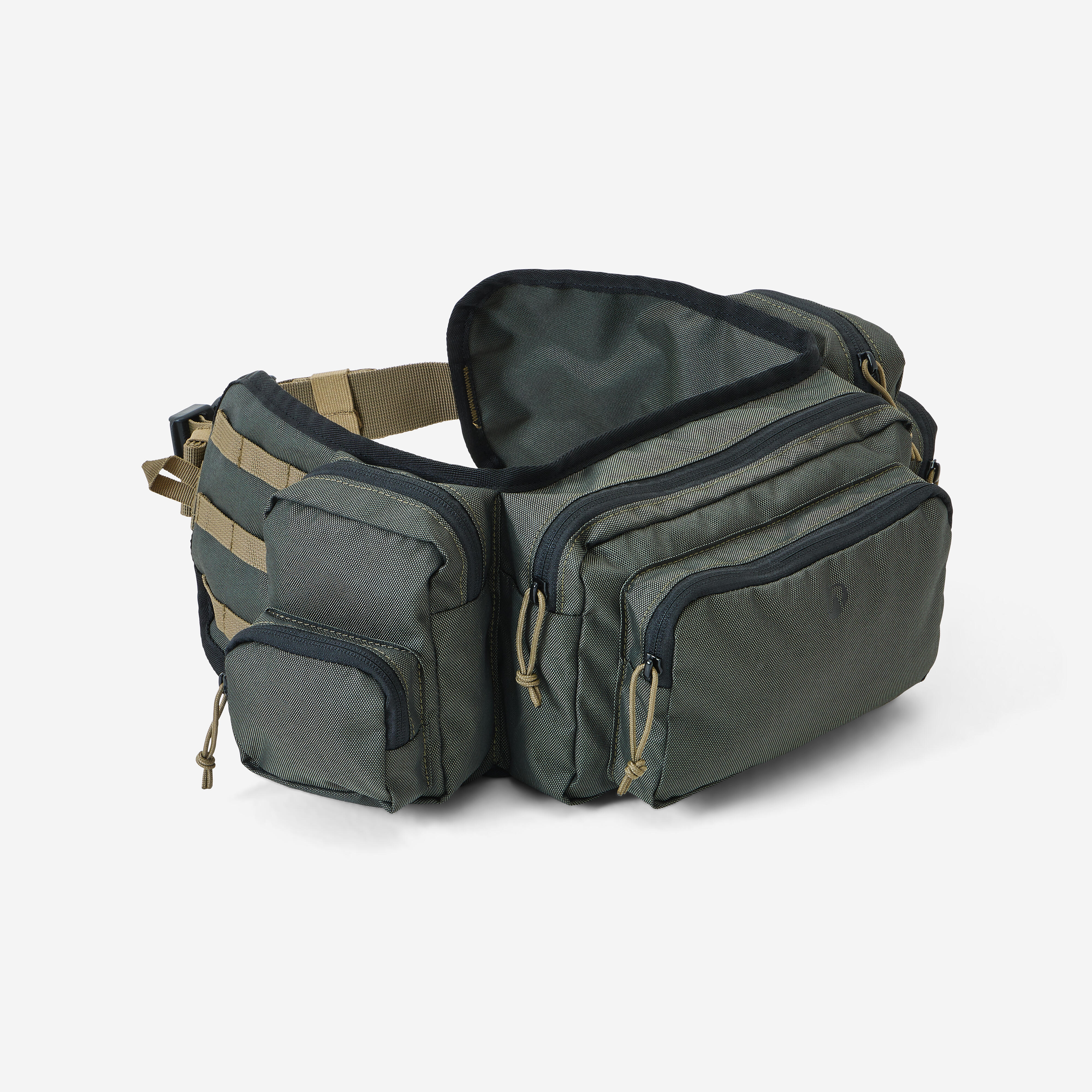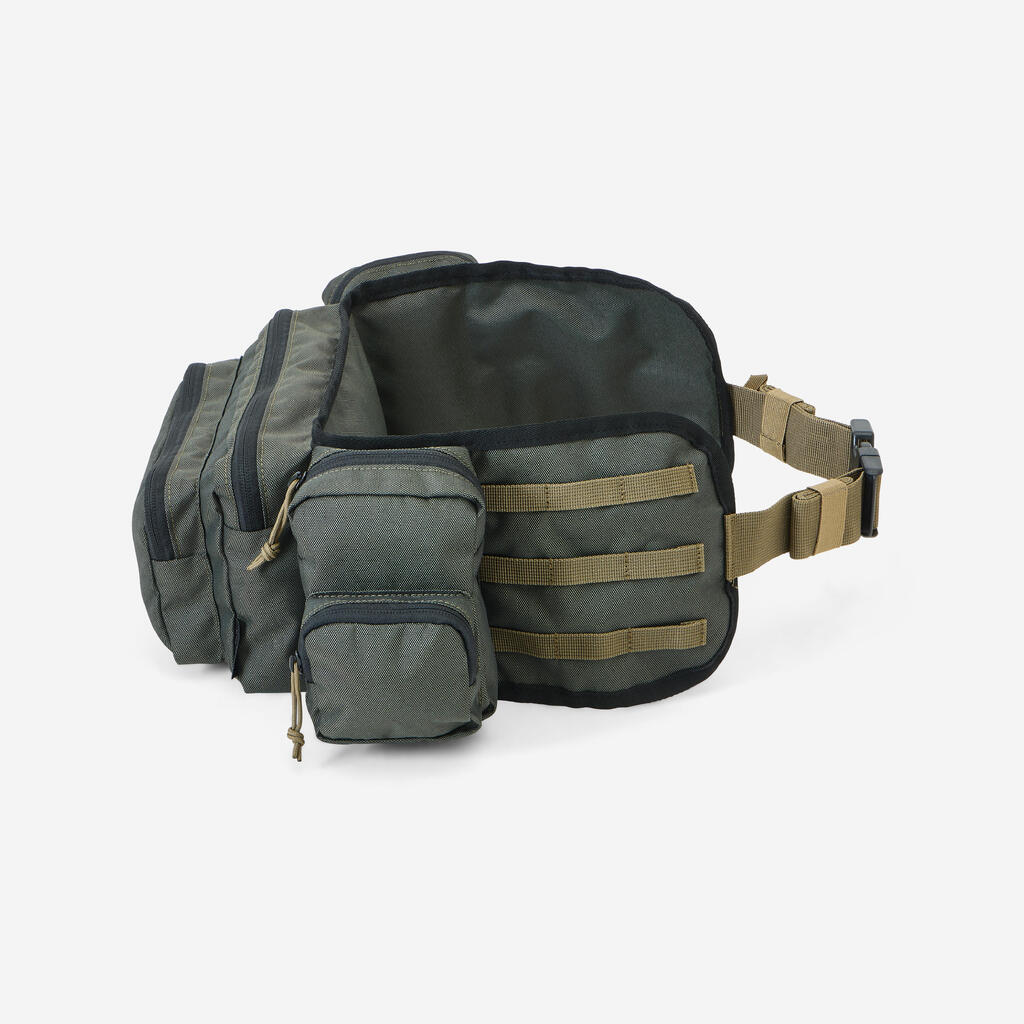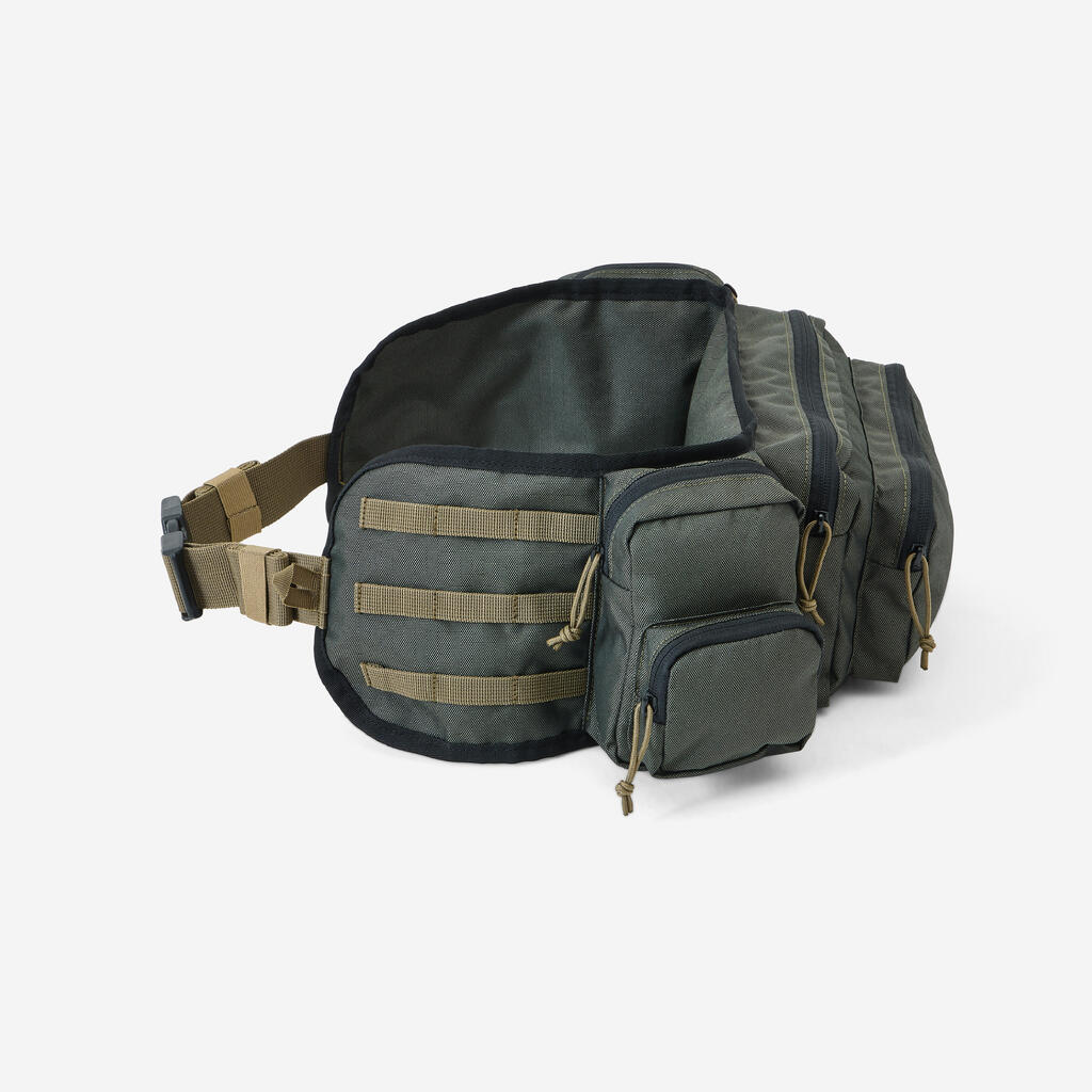 Torba ima 6 predelkov: Da si lažje predstavljate: v glavni sprednji žep lahko shranite sendvič ali manjšo 0,5-l plastenko za vodo. Upoštevajte, da zaradi prostornine in sistema nošenja torbica okoli pasu odlično služi tudi, kot mobilni komplet prve pomoči. Seveda pa je primerna tudi za druge aktivnosti na prostem.