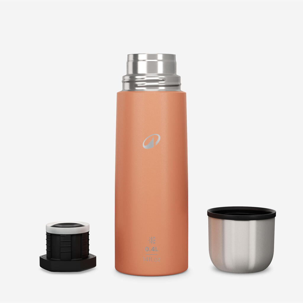 Tekočino preprosto nalijete tako, da delno odvijete pokrovček. Tako vam ni treba popolnoma odpreti termovke, kar bi zmanjšalo njeno toplotno učinkovitost. Skodelici so priloženi tudi navoji, s katerimi jo pritrdite na termovko za lažje prenašanje.