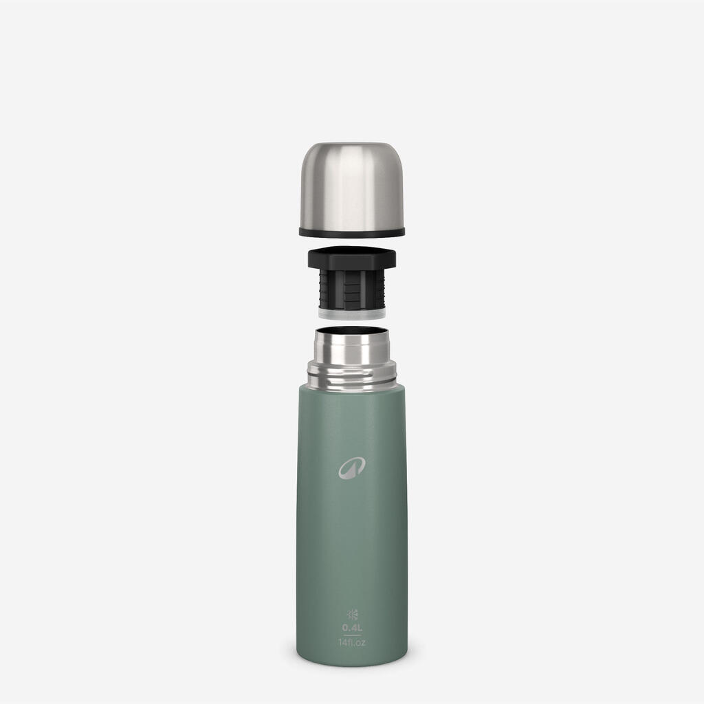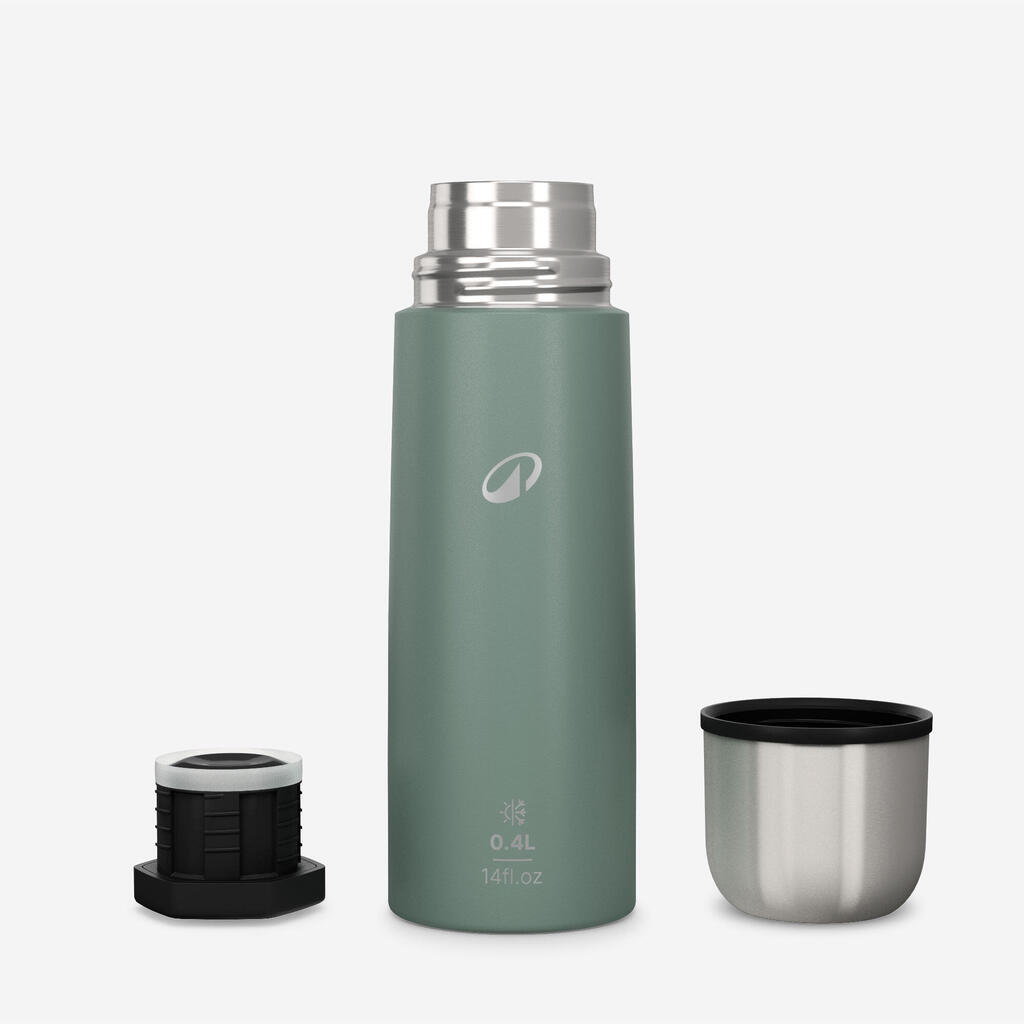 Enostavna in robustna termovka s pokrovčkom, ki ga odvijete za 1/4 obrata. Priložena skodelica. 0,4 l.