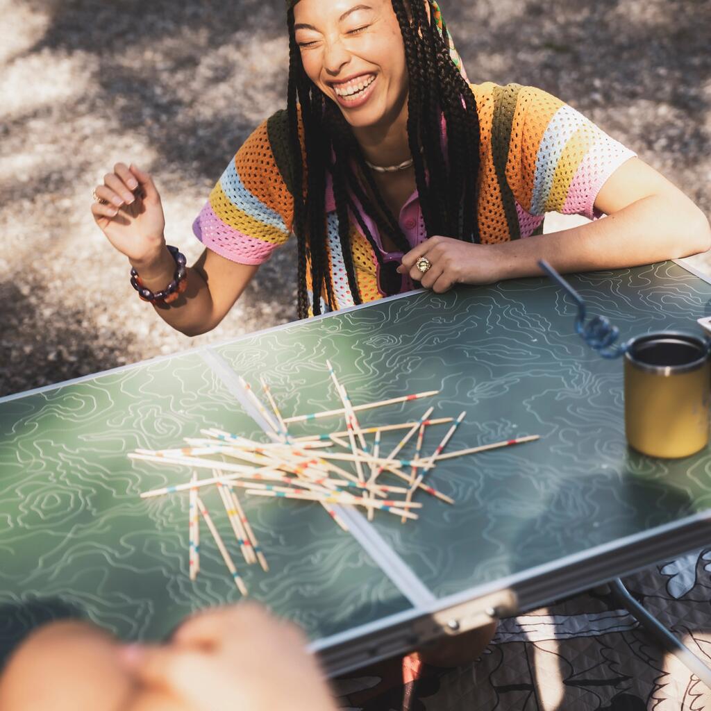 Naš cilj? Ponuditi stabilno in trdno mizo za kampiranje. Za njo lahko udobno sedijo do štiri osebe, vendar pa lahko za njo sedi tudi do šest oseb.