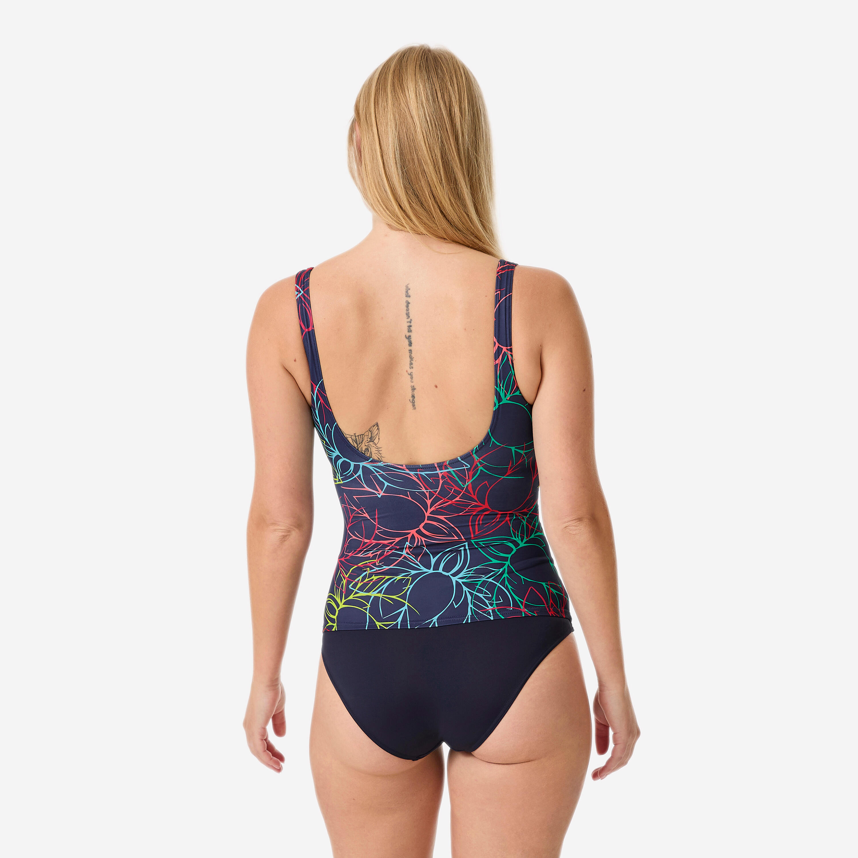 Ženske kopalke ustvarijo videz ravnega trebuha. Imajo všit nedrček 360° s podloženimi košaricami ter hrbtni del v obliki črke U, ki omogoča preprosto oblačenje.