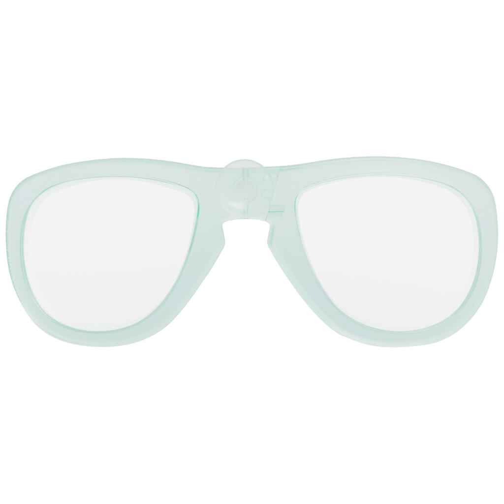 Korekcijsko steklo je zasnovano za kratkovidnost. Posebej je naprodaj steklo za levo in desno oko. Steklo se prisesa na masko Easybreath. Nič več motnih rib!