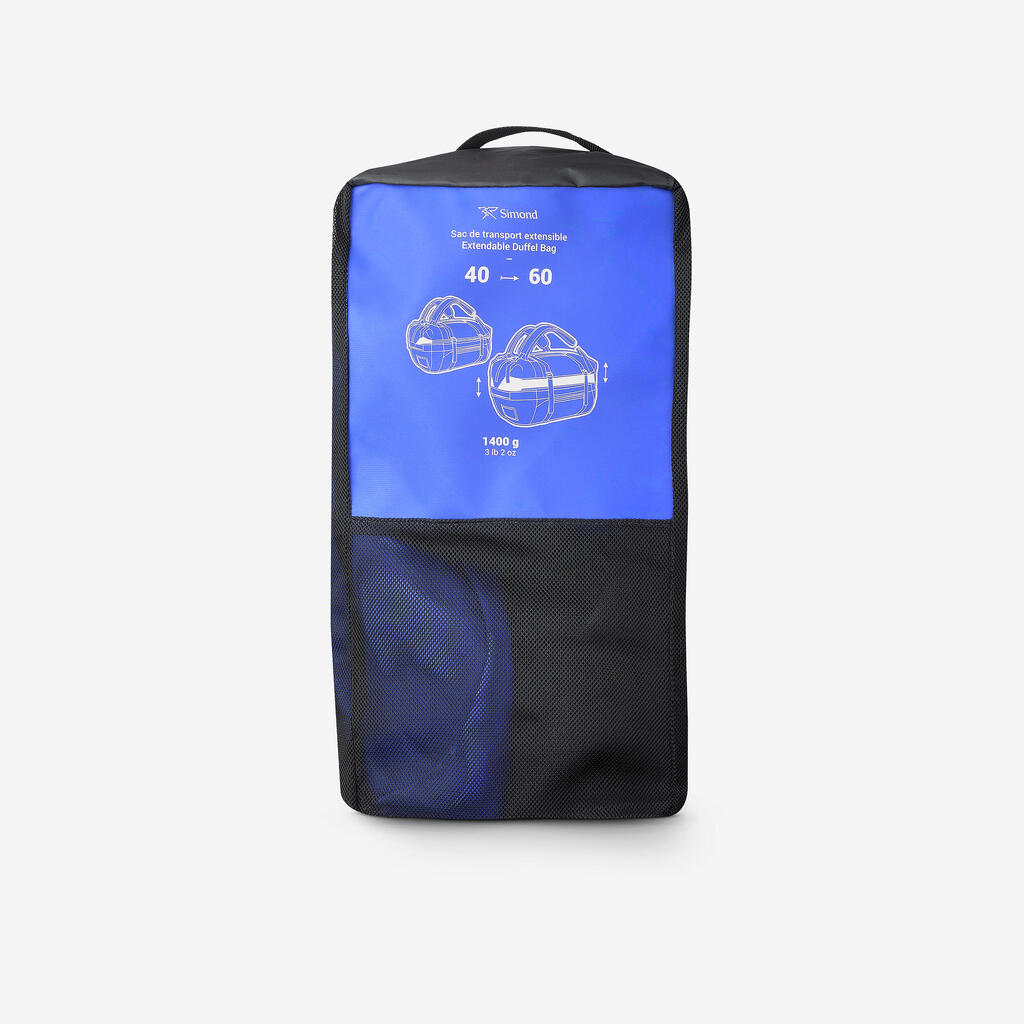 Torba je opremljena z našim sistemom "Extend", tako da lahko spreminjate prostornino torbe. Gre za sistem trakov, ki sprostijo dodaten prostor, ko jih zrahljate. Nasprotno pa tudi stisne torbo, da jo zmanjša na najmanjšo prostornino (40 l).