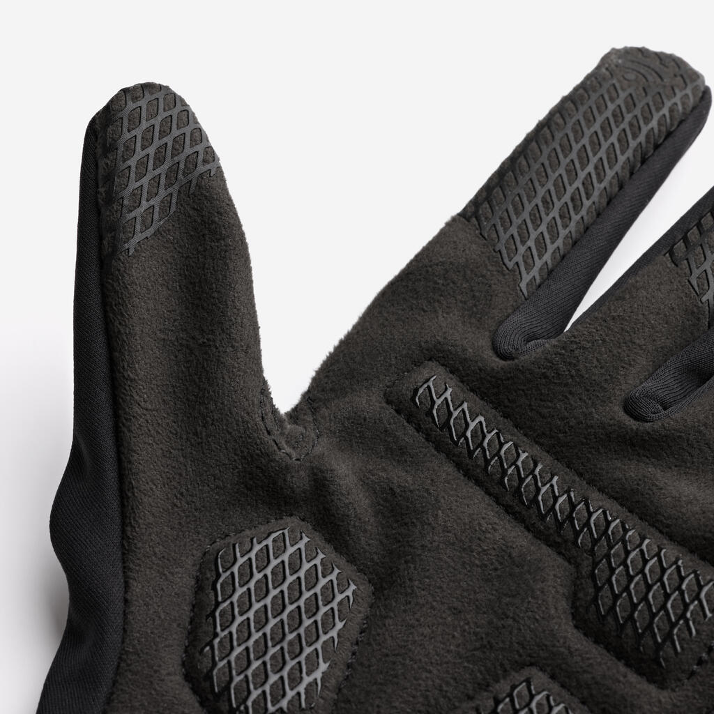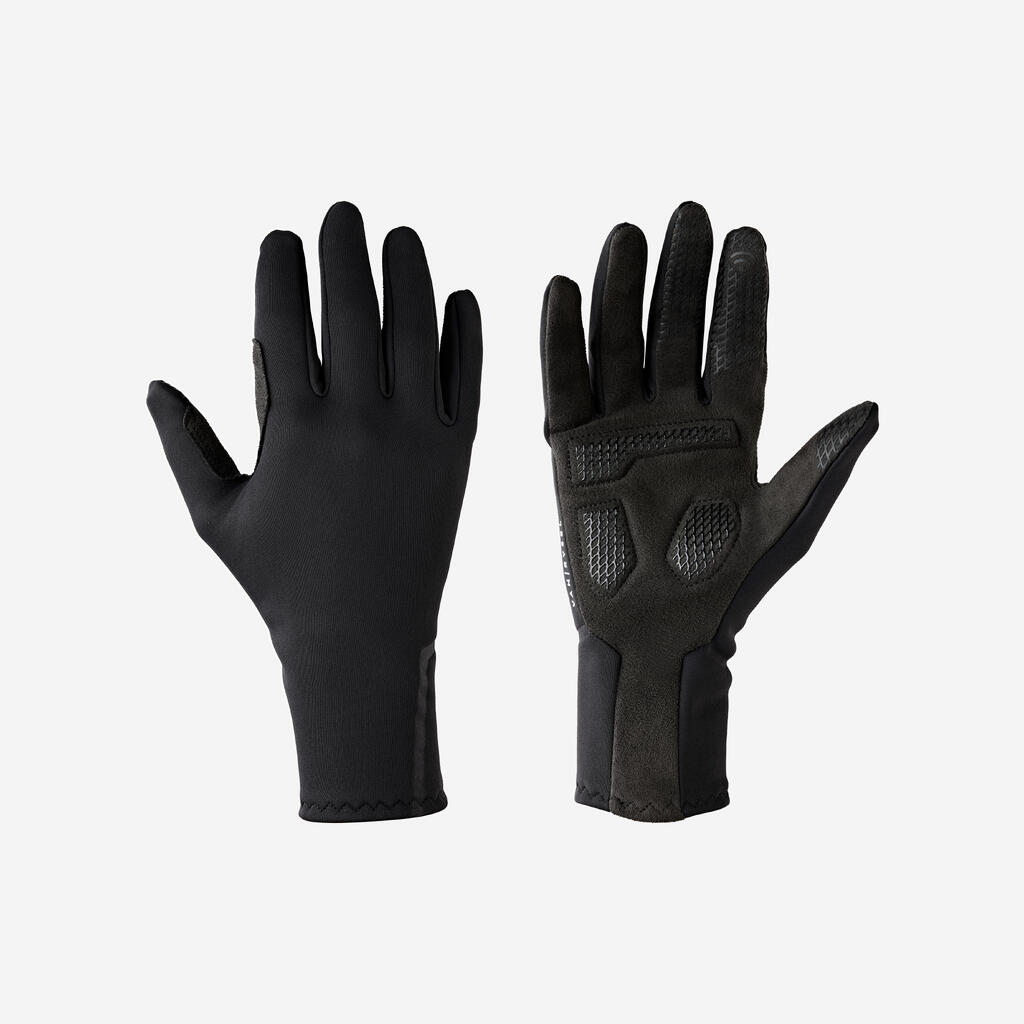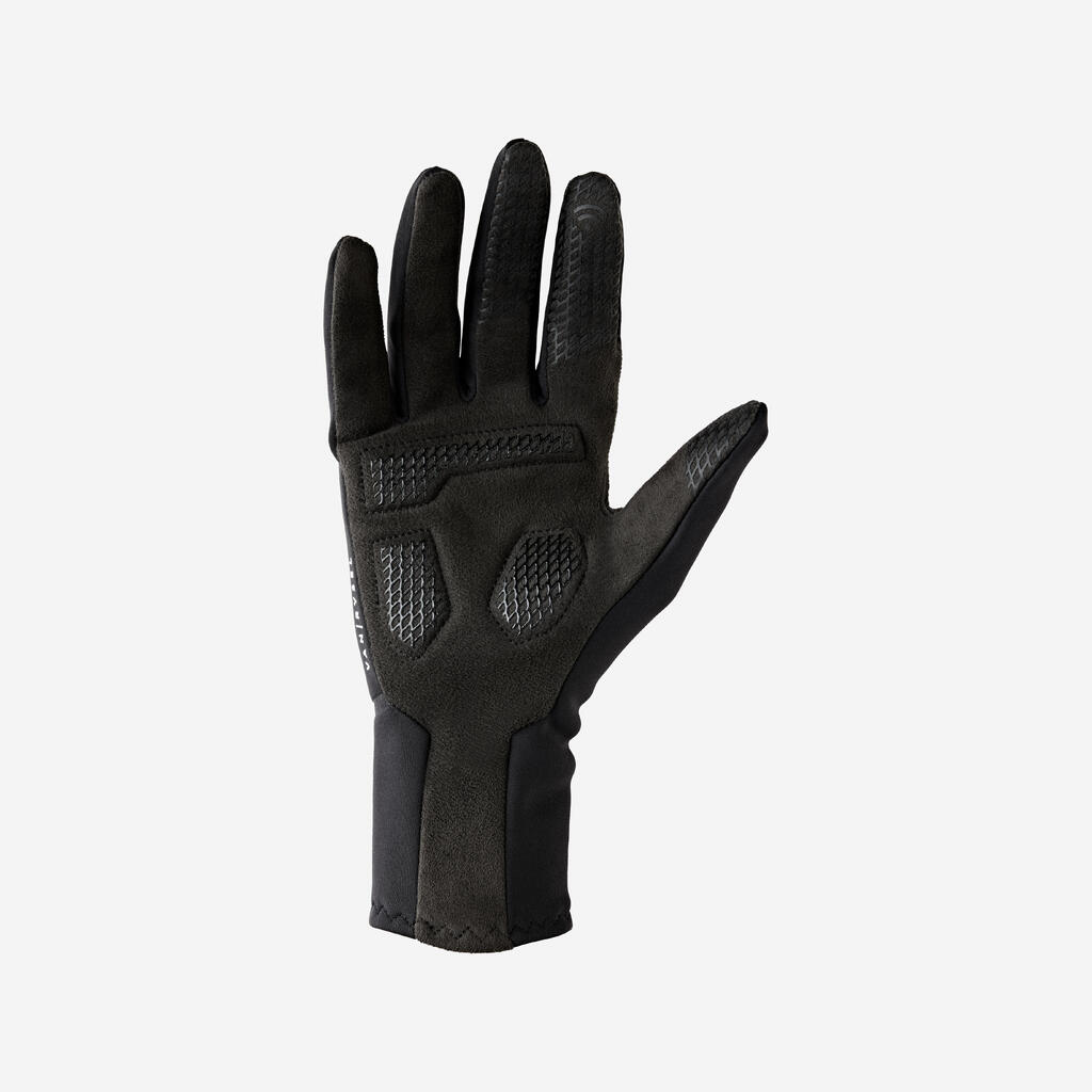 Te kolesarske rokavice B'Twin so odlične za hladno vreme. Tanki krtačeni flis omogoča dober oprijem krmila. Dolge in tanke manšete ustvarjajo občutek "druge kože".
