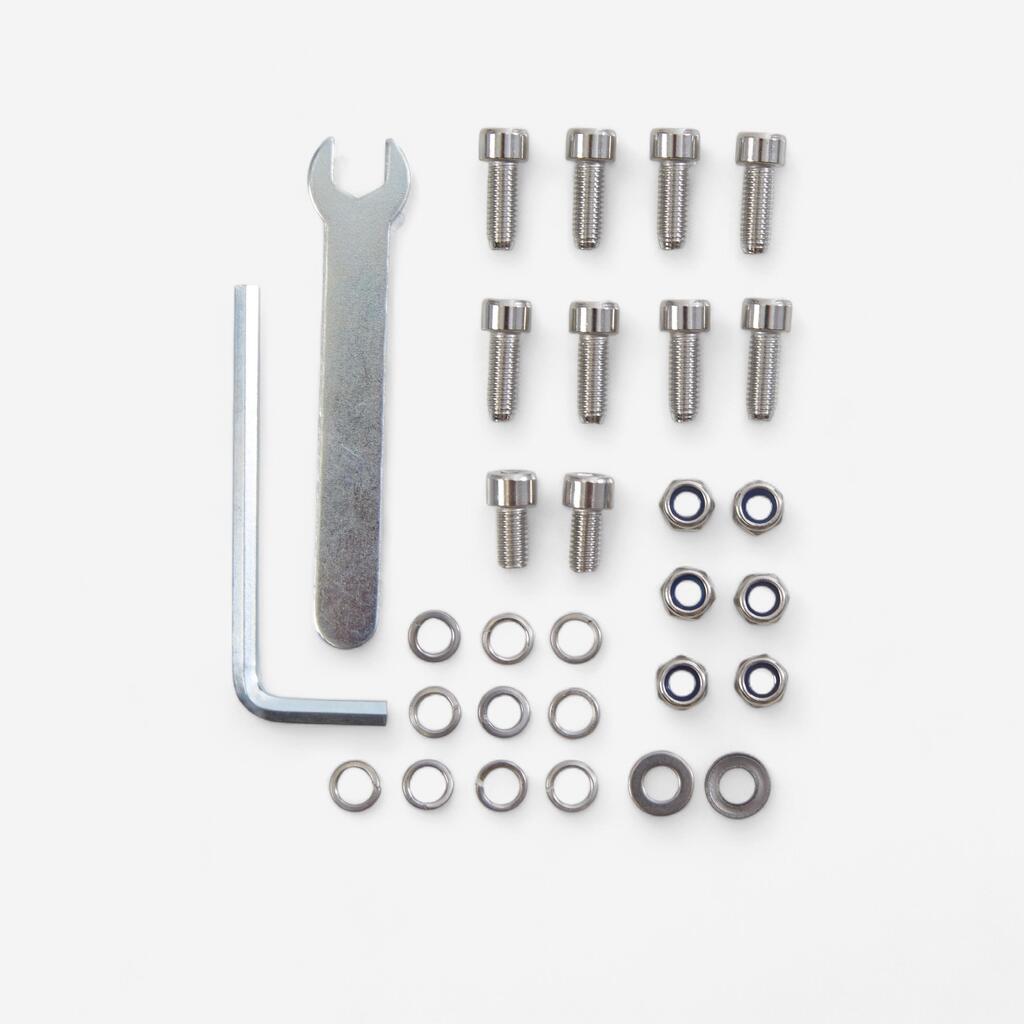 Vsi prtljažniki so popravljivi. Naredili smo komplete za popravilo, ki vsebujejo vse ohlapne dele naših stojal za košare: vijaki in odstranljivi povezovalni deli. Če ste del izgubili ali poškodovali, ga lahko zamenjate, ne da bi morali kupiti popolnoma novo stojalo za košaro. Referenčno kodo, ki ustreza kompletu izdelka najdete na ODDELKU ZA PODPORO.