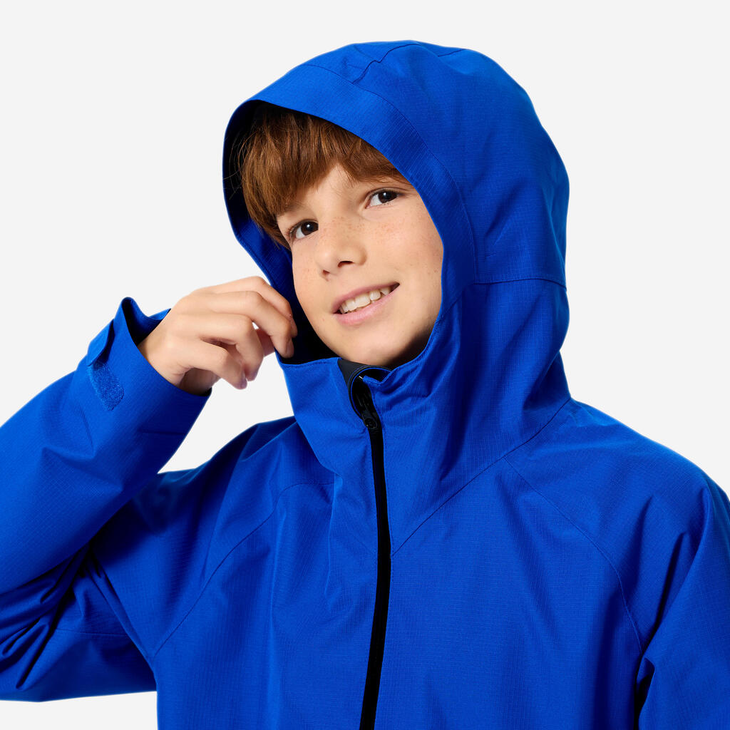 Odpornost materiala na pritisk vode merimo z vodnim stolpcem v mm (v skladu s standardom ISO 811). Višja kot je številka, večja je zaščita. Vodoodpornost 10.000 mm zagotavlja odpornost 3 ure dežja: odlično za otroške dogodivščine.