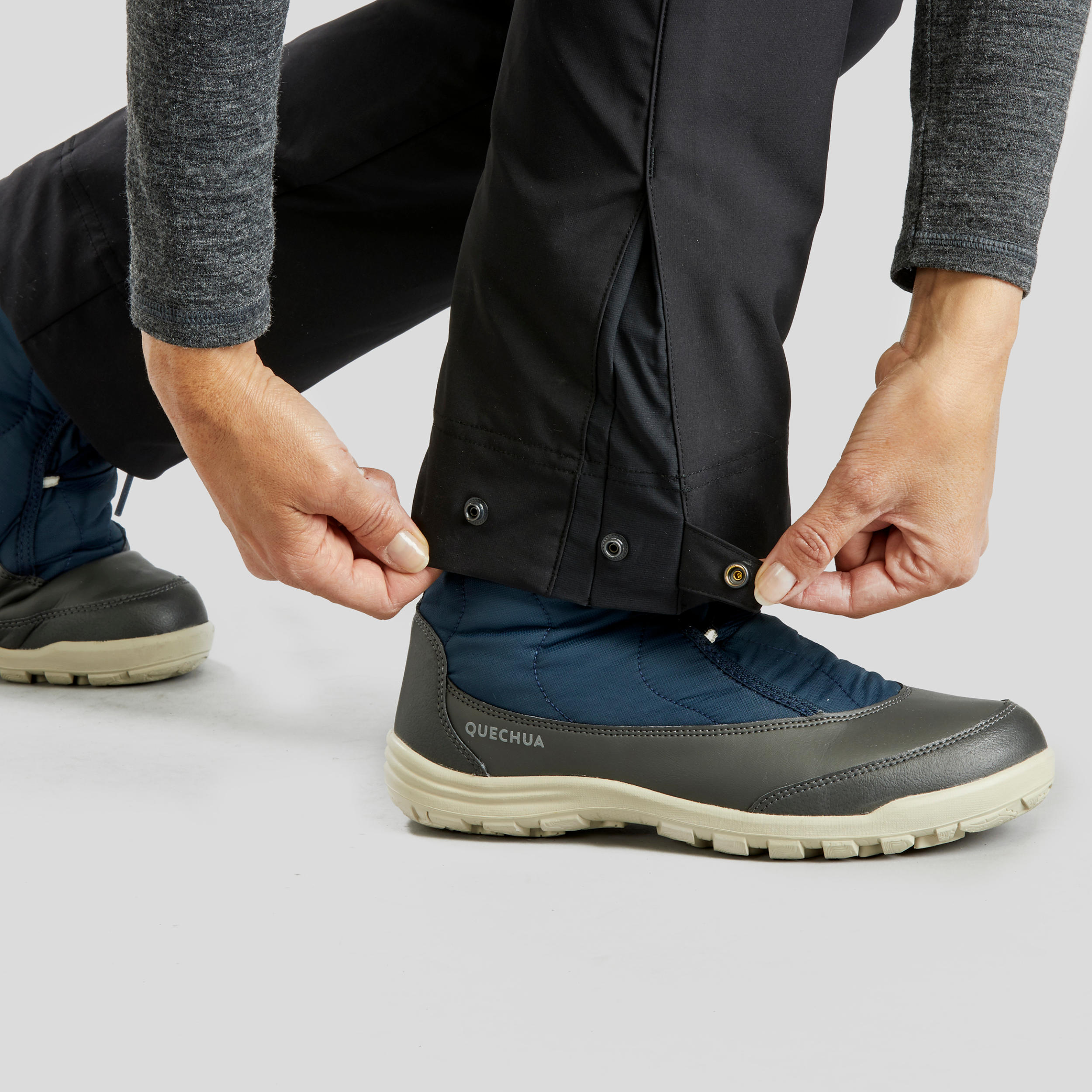 Pozimi se je treba zaščititi pred vlago (sneg, dež) in vetrom, saj lahko slednji telo močno ohladi, ne glede na to, ali ste fizično aktivni ali mirujete. Zasnovali smo hlače, ki so izdelane iz vodoodbojnega materiala, odpornega na veter, in omogočajo, da se spopadete z vsemi zimskimi pogoji. Patent na gležnju ščiti pred vdorom snega.