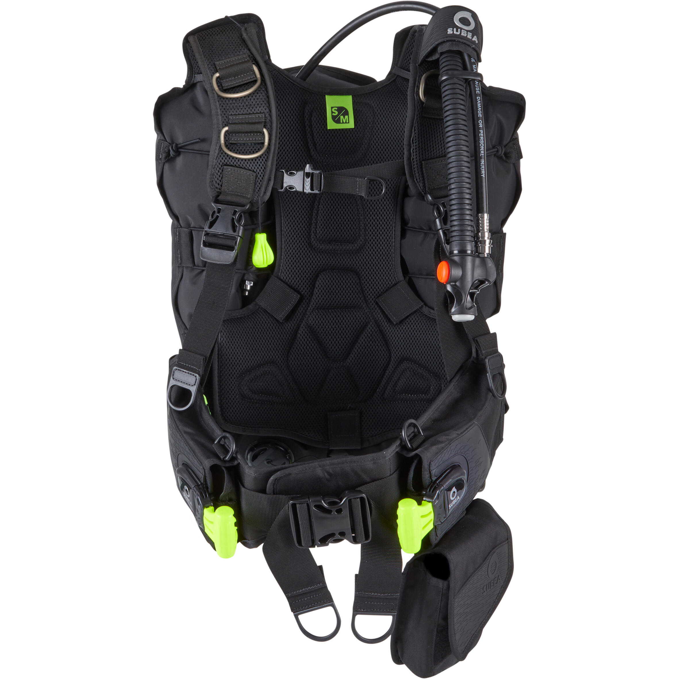 Na voljo v dveh velikostih (S/M in L/XL). Pas lahko prilagodite vsem postavam. Za dobro prileganje ga prilagodite s trakom na ježek na zadnji strani. Za dodatno udobje so pri znamki Subea razvili ojačano zadnje oblazinjenje, ki olajša pritisk jeklenke. Naramnice so oblazinjene za večjo prožnost v ramenih.