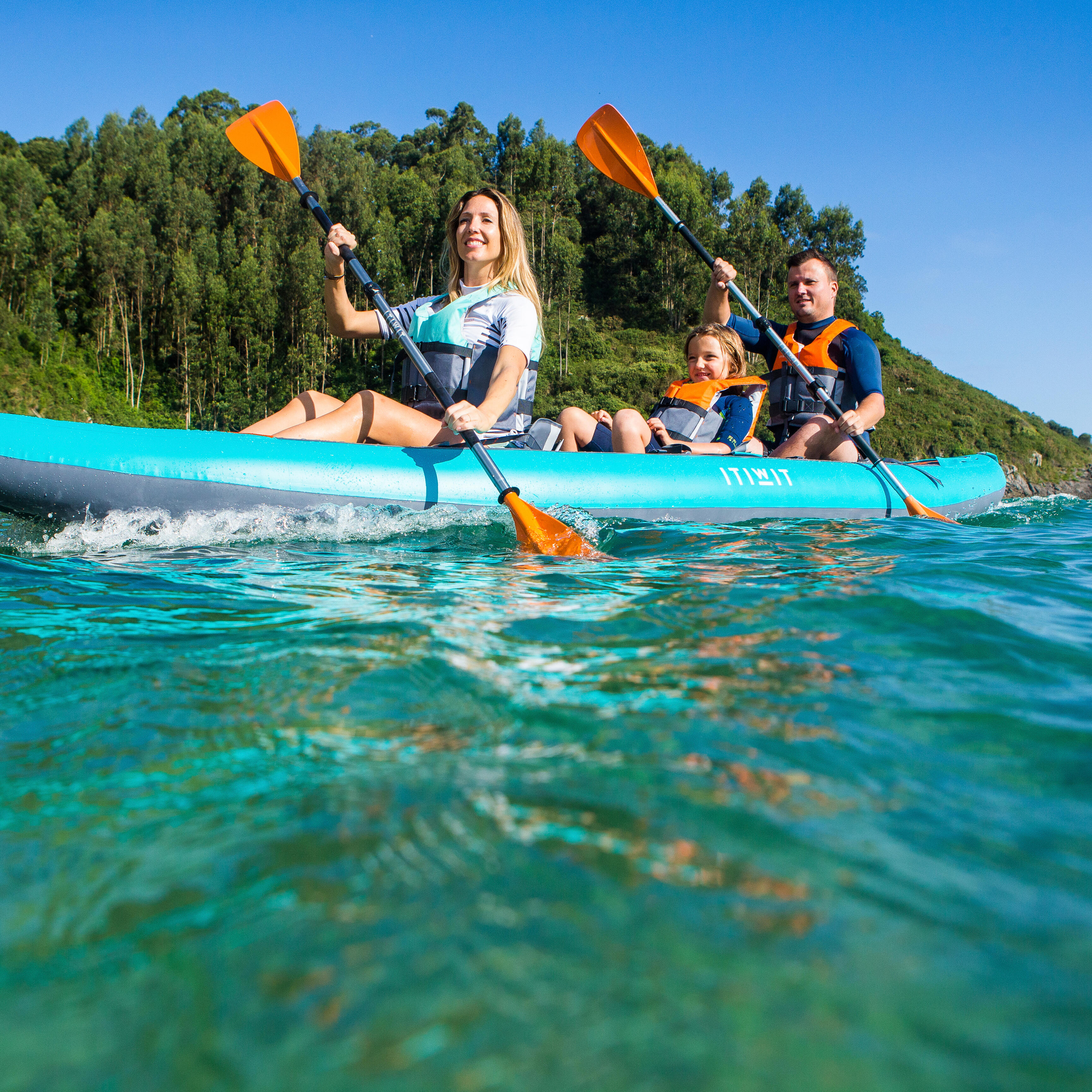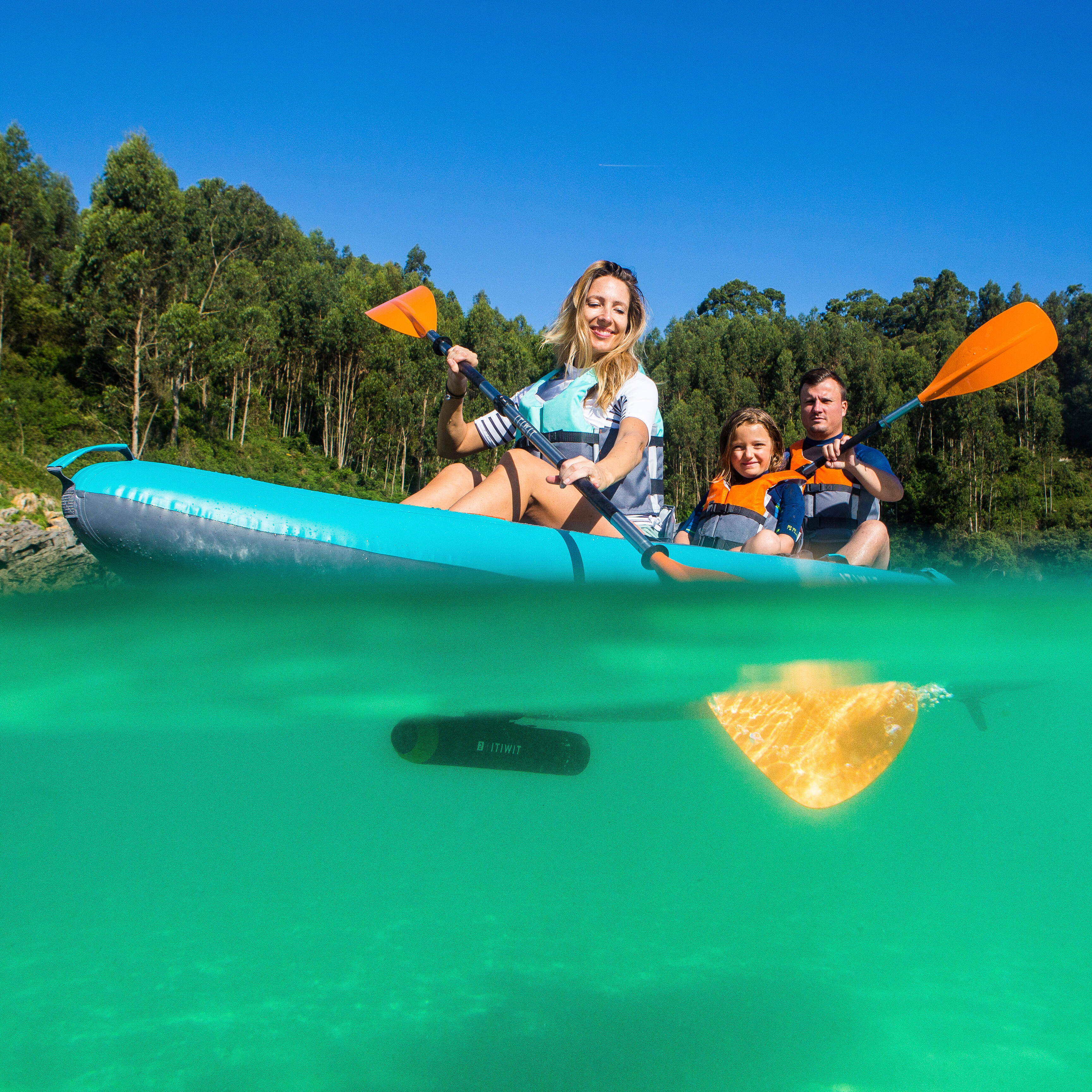 Prilagodljivo simetrično veslo. Lahko ga prenašate v torbi za kajak. Zaradi oprijema na ročaju in zaščite proti kapljanju je izjemno udobno.