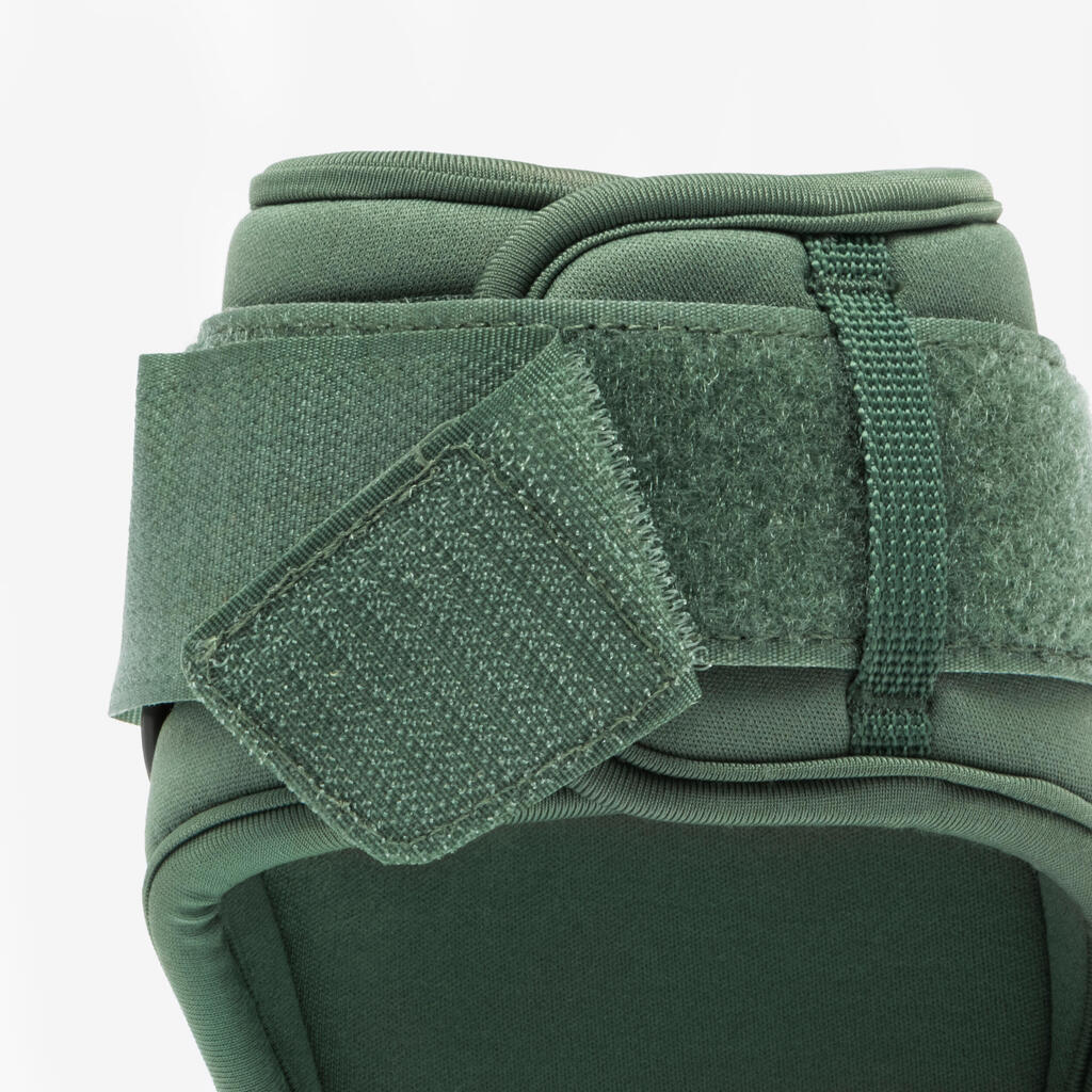 Ščitnike lahko hitro nadenete, saj imajo prilagodljiv trak na ježek in omogočajo uporabo v različne namene. Ščitijo konja med skoki, sprehodi in treningi v ogradi.