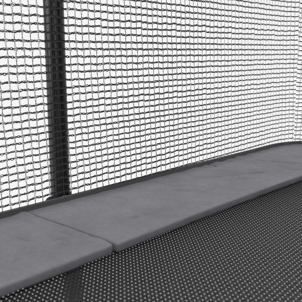 Očistite zaščitne blazine okoli roba trampolina s čisto milnico. Ne priporočamo uporabe abrazivnih izdelkov ali vode pod visokim pritiskom, ker lahko poškodujete PVC zaščito.