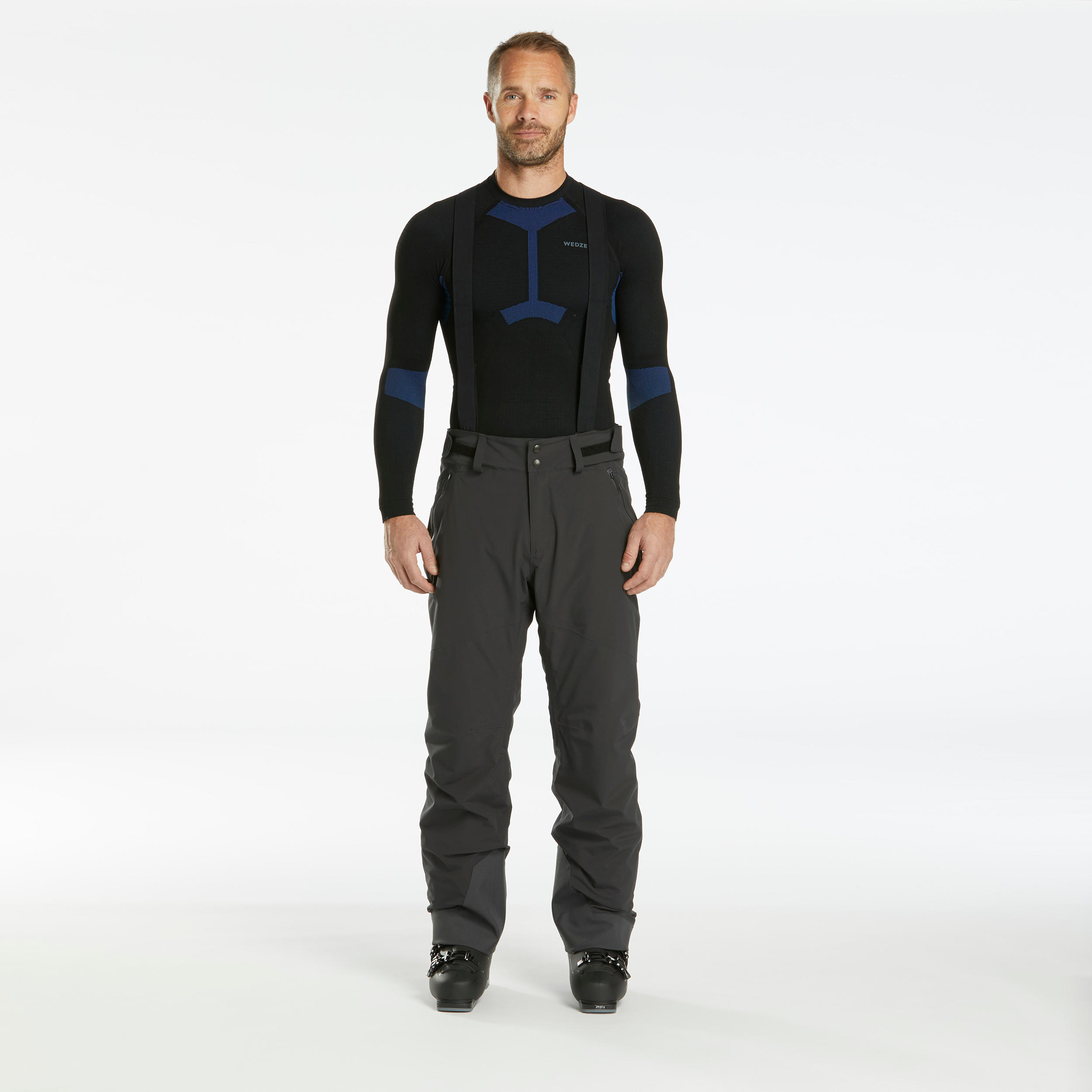 Na spodnjem delu hlačnic so naše hlače opremljene z elastičnimi gamašami, ki jih lahko potegnete prek smučarskih čevljev. Gamaše preprečujejo vdor snega v hlače.
