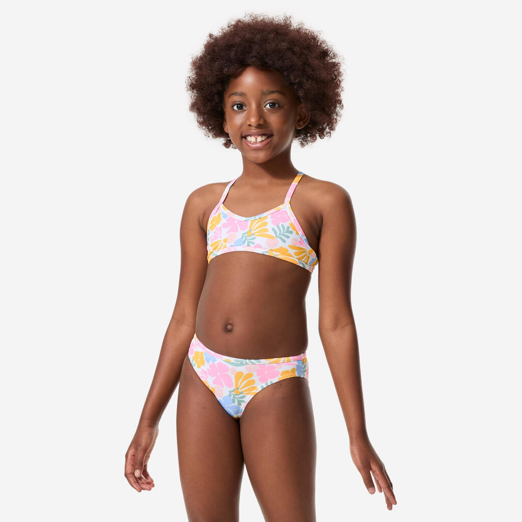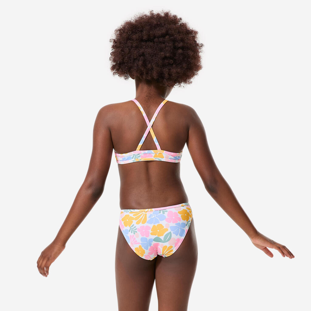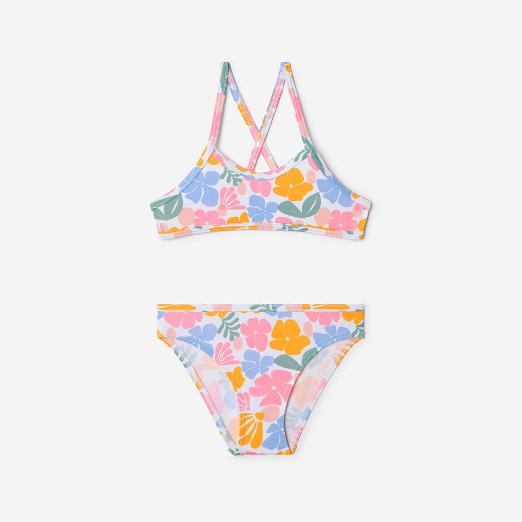 Bele dvodelne kopalke s prekrižanimi naramnicami BONI