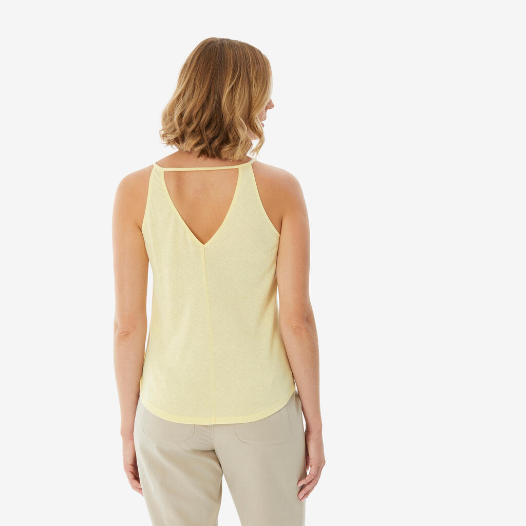 Mešanica bombaža, poliestra in liocela skrbi za mehkobo. Všeč vam bo odprt hrbtni del in zračen sprednji všitek.