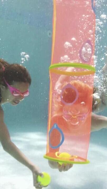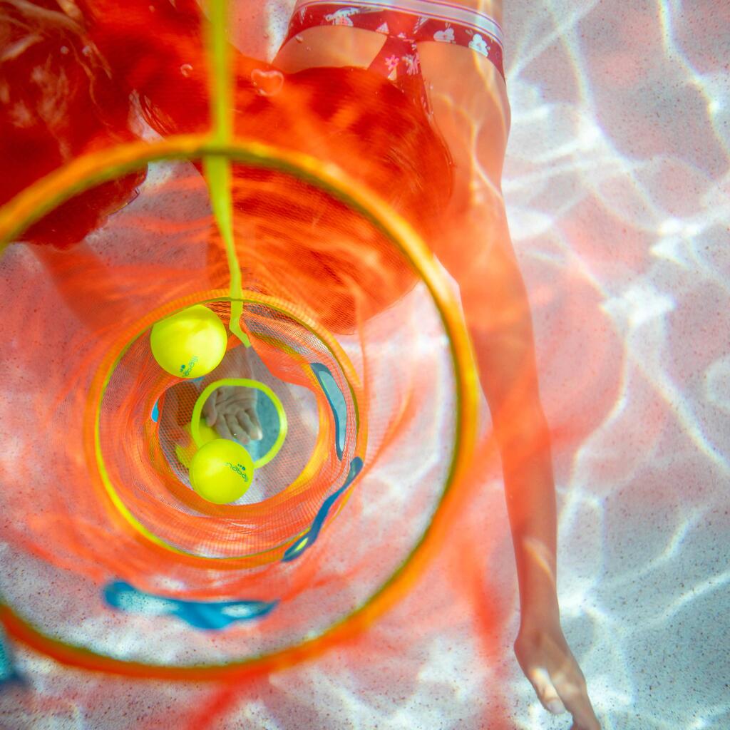 Otrok mora žogo potisniti skozi prvo odprtino in se vrniti na površino. Nato se potopi do druge itd., vse do najgloblje odprtine, ki jo lahko doseže. Ko doseže odprtino se mora vrniti pod vodo tolikokrat, kolikor odprtin je preostalo.