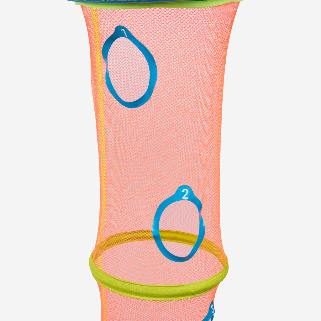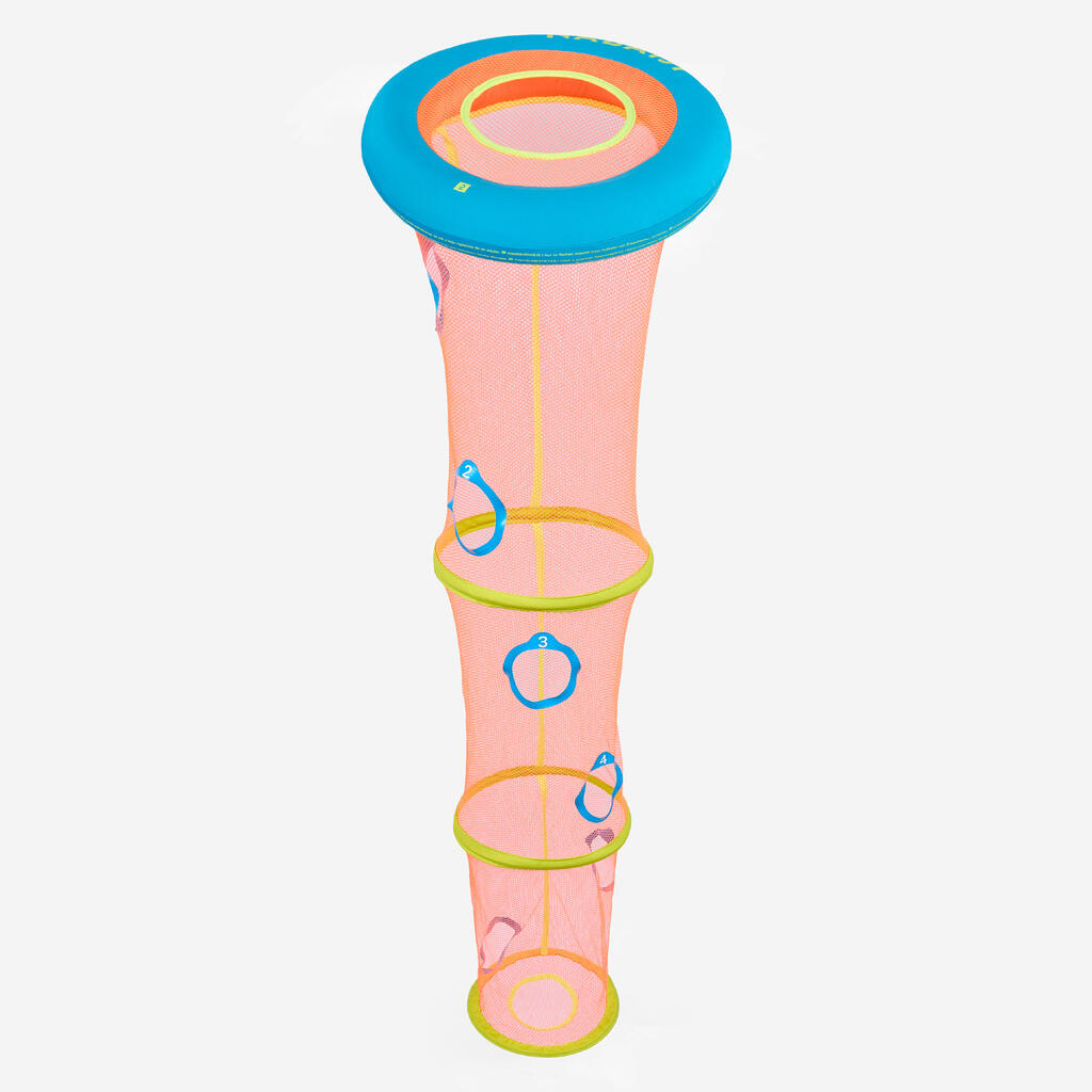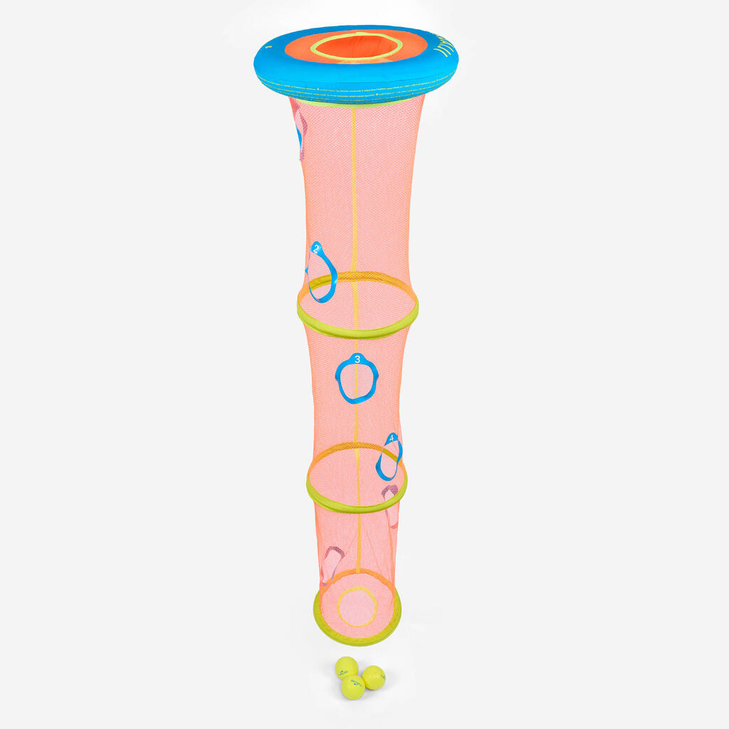 Izdelek je sestavljen iz plovca s 1406 -cm obteženo mrežo s številčno označenimi šestimi odprtinami. V vrečki se nahajajo tri penaste žoge. Ko izdelek vržete v vodo, se nemudoma razvije in postavi.