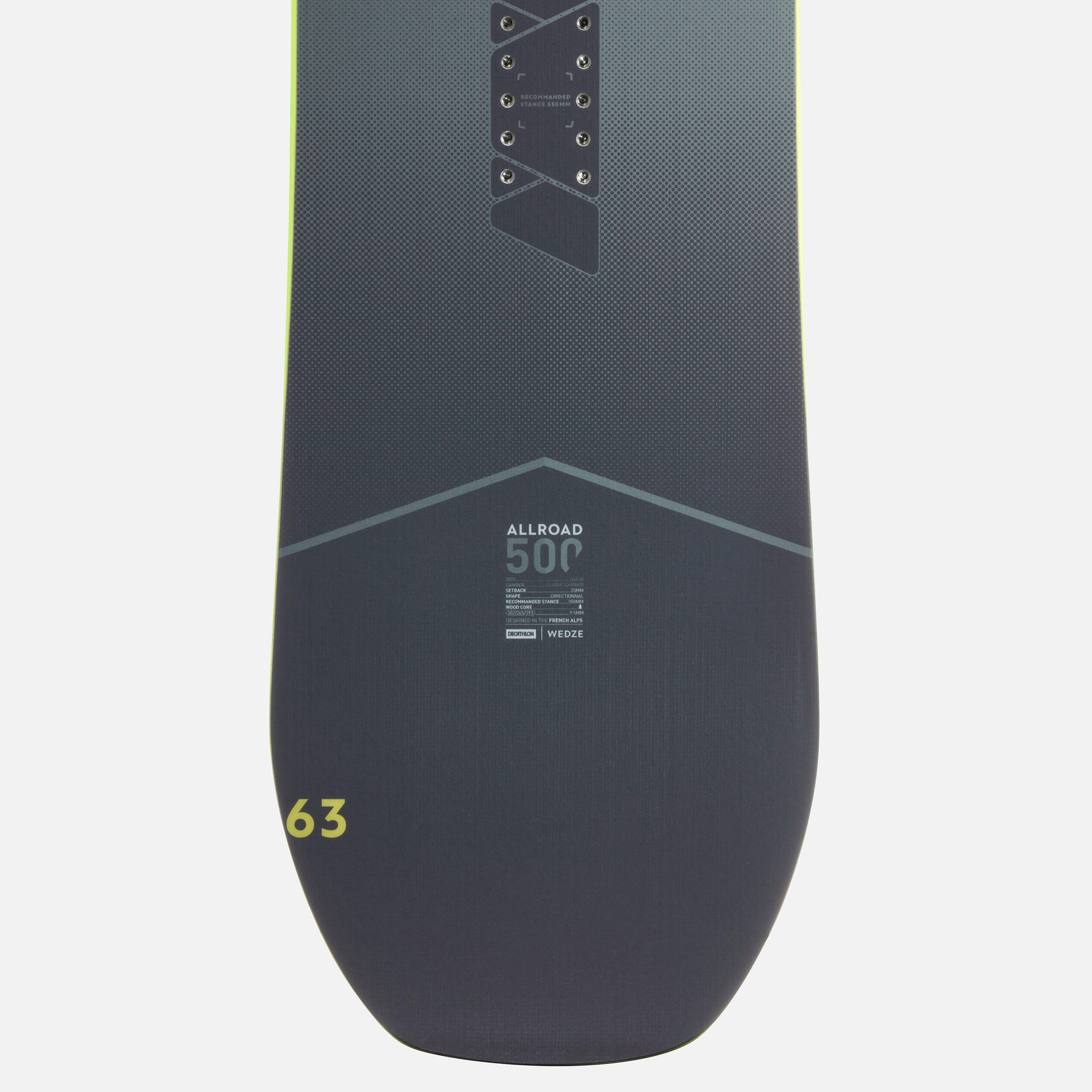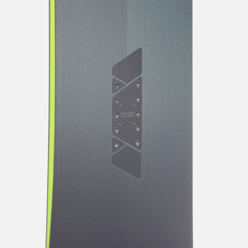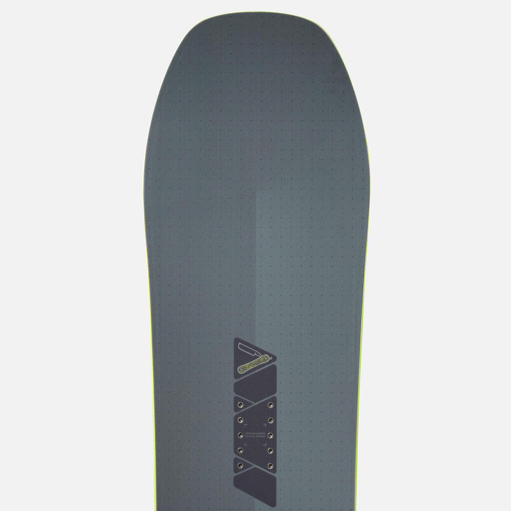 Odlična deska za vse terene. 50 % na progah in 50 % izven prog. Z njo se lahko vozite kjerkoli. Na vseh vrstah snega, na progi, izven proge in na pršiču. Zaradi tega je sprednji del oblikovan na poseben način. Deska ni primerna za snežne parke.
