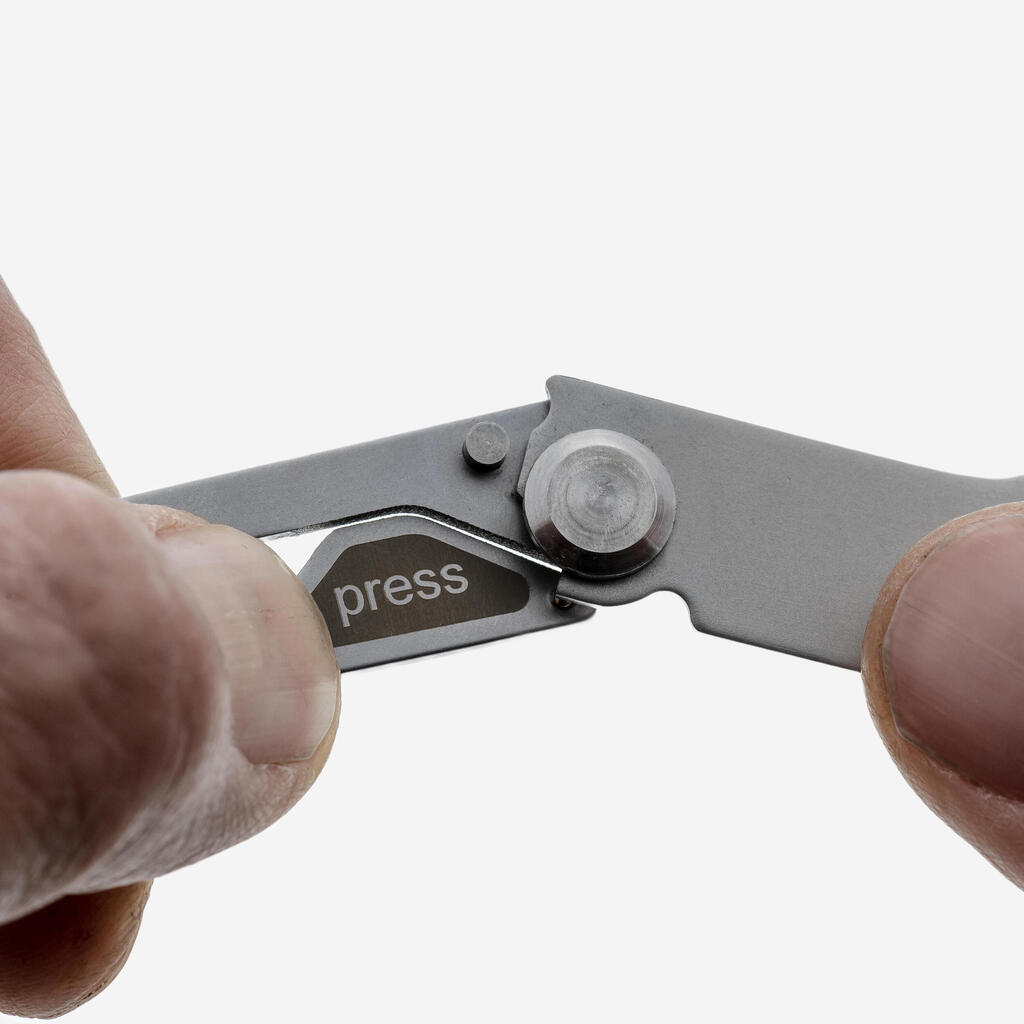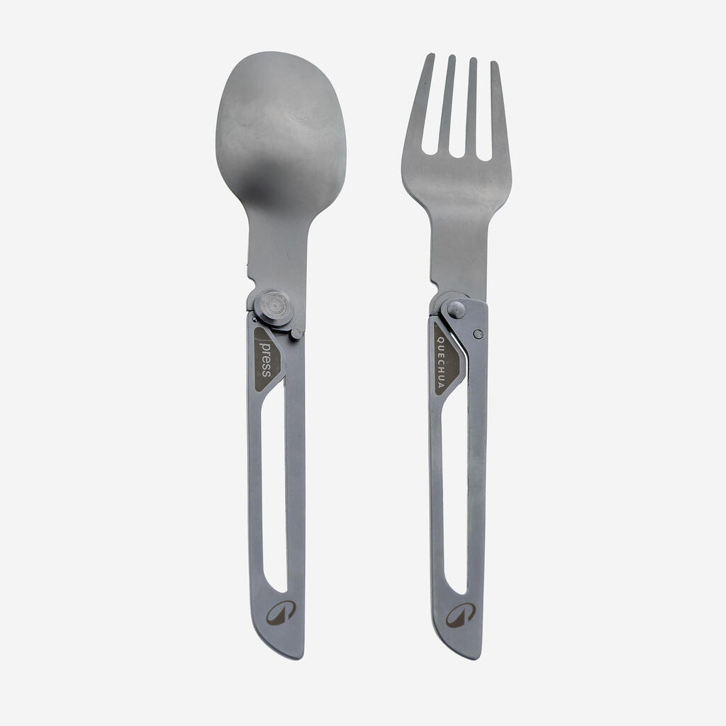 Preprosto zavrtite ročaj, da razgrnete pribor in ga zaklenete v odprtem položaju. Če ga želite zložiti, pritisnite del ročaja z oznako „press“ in nato zložite ročaj navzdol. V etui sta žlica in vilice, vanj pa lahko namestite tudi dodaten nož, tako da lahko vse nosite skupaj. Prevleka ima zaponko za obešanje in zanko za pritrditev. Notranjost lahko uporabite za čiščenje jedilnega pribora.