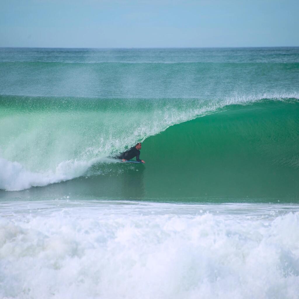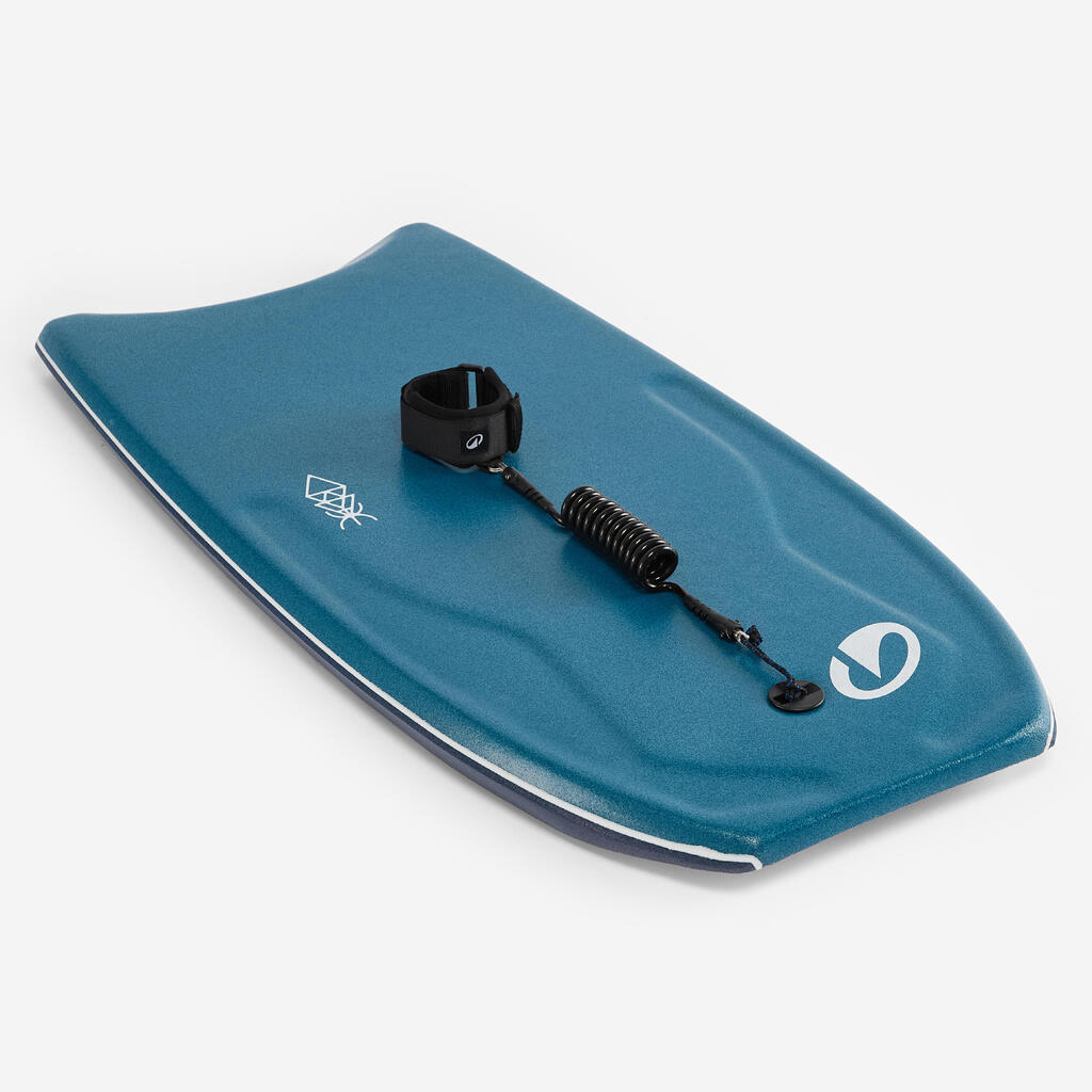 Zato ima ta bodyboard deska skrbno nameščene ročaje, ki vam omogočajo, da se intuitivno namestite v pravi položaj. Priloženo vrvico lahko po želji pritrdite na zapestje ali biceps (izključno za Decathlon).