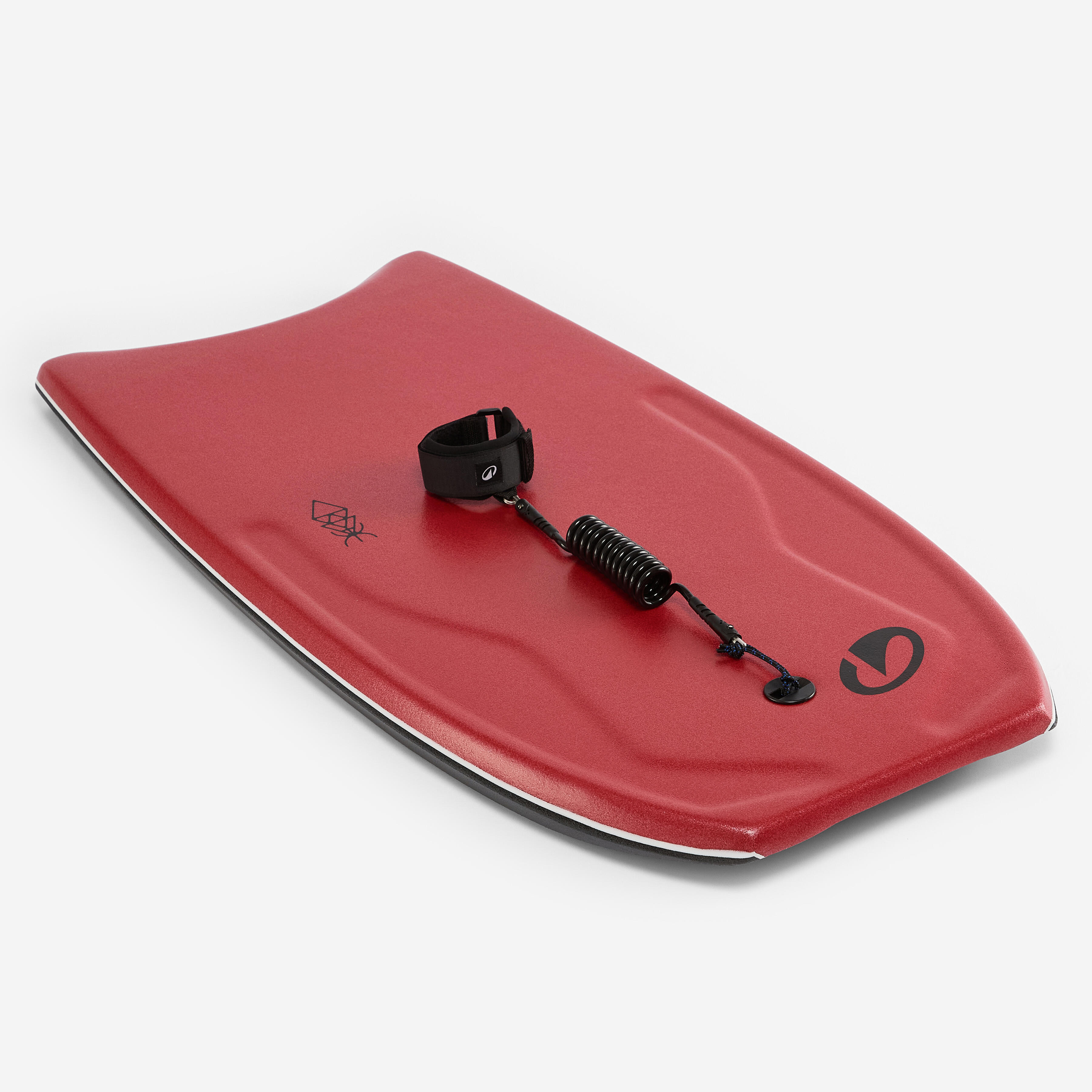 Zato ima ta bodyboard deska skrbno nameščene ročaje, ki vam omogočajo, da se intuitivno namestite v pravi položaj. Priloženo vrvico lahko po želji pritrdite na zapestje ali biceps (izključno za Decathlon).