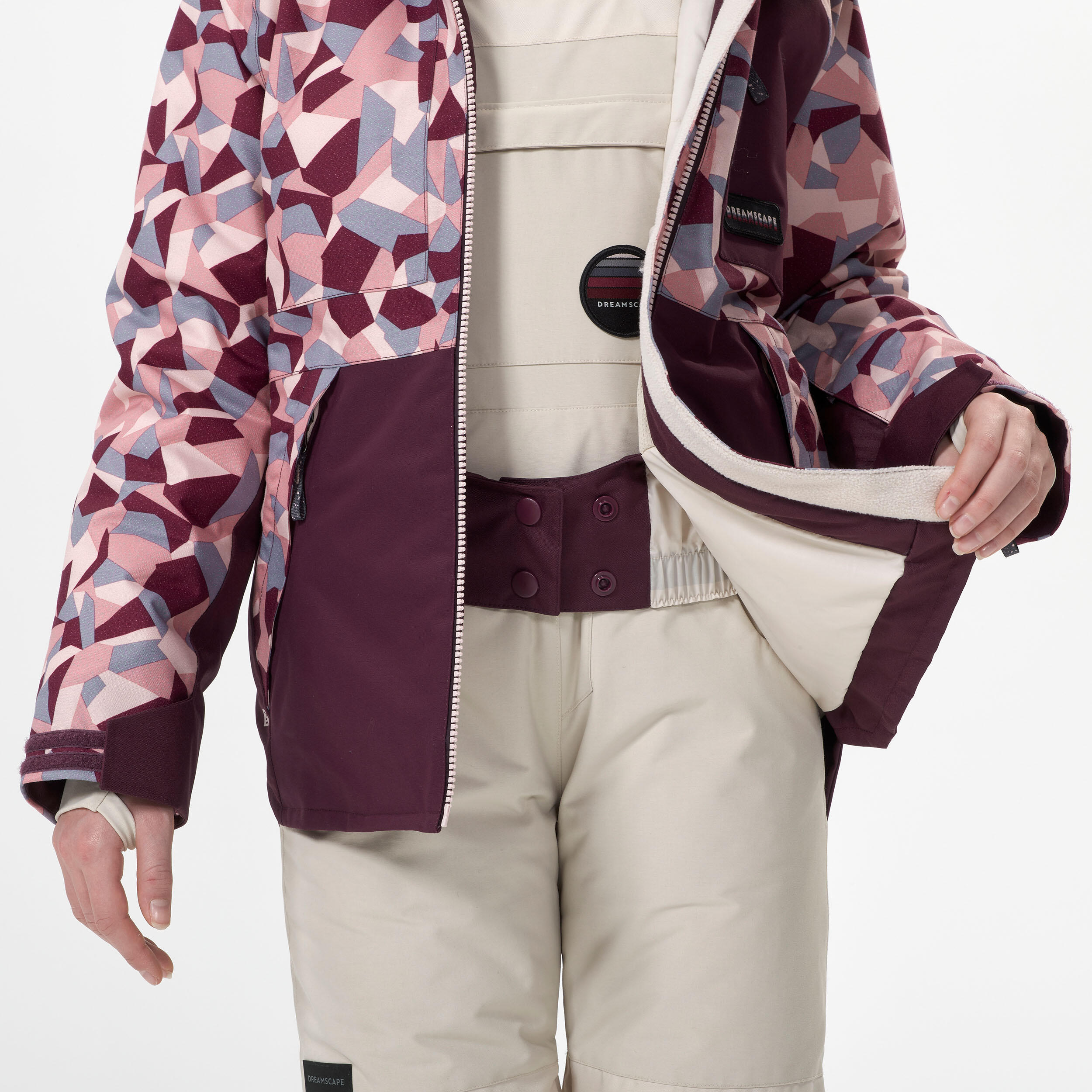 Med deskanjem lahko padete in sneg prodre v jakno. Da bi bila izkušnja čim manj neprijetna, sta ovratnik in kapuca zasnovana kot en del. Da bi kapuco uporabili kot šal, jo morate dvakrat zviti in jo pripeti, da ostane visoko in zapolni prostor pod čelado. Ovratnik mora biti normalno zapet do vrha, da bi bila jakna zgoraj tesno zapeta.