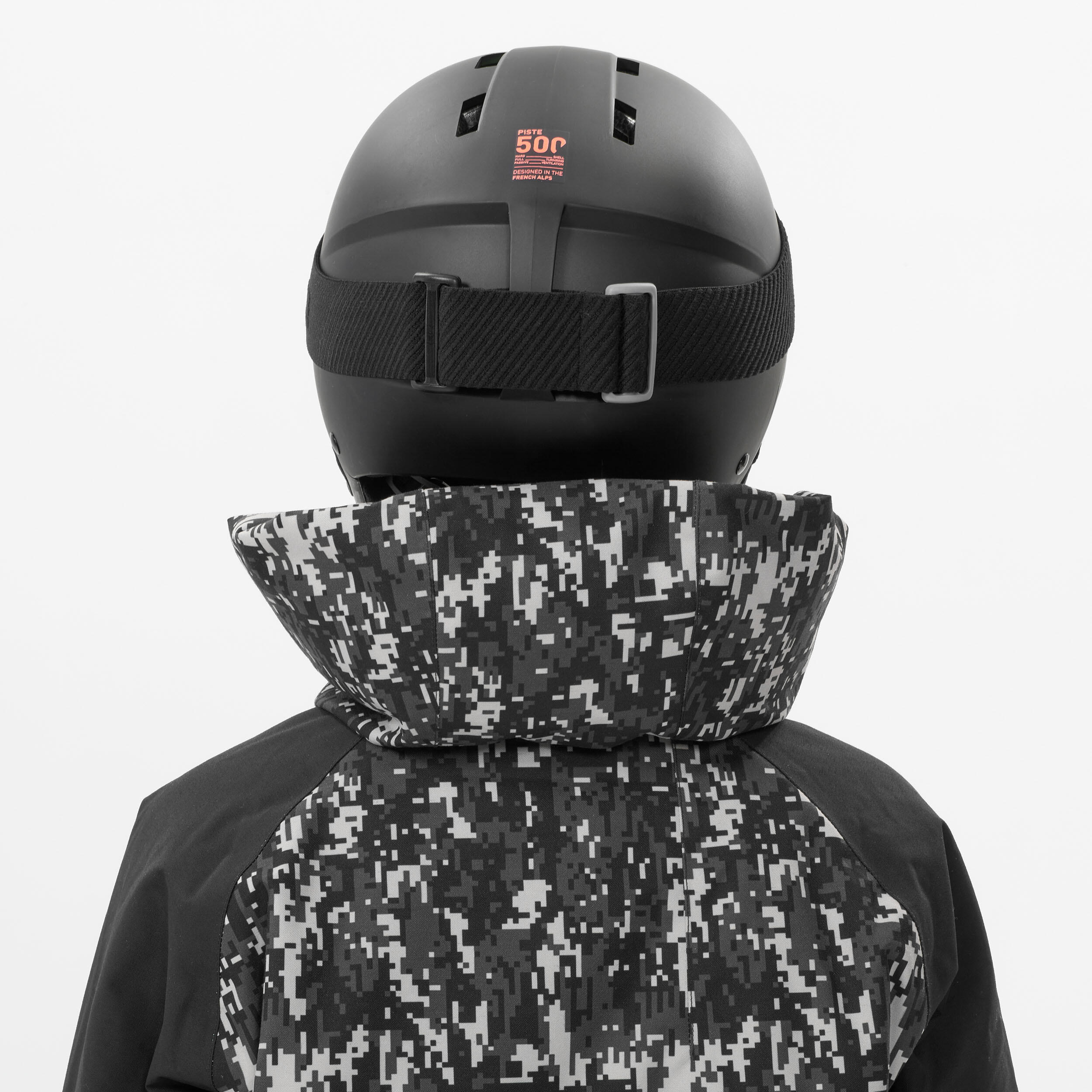 Med deskanjem lahko padete in sneg prodre v jakno. Da bi bila izkušnja čim manj neprijetna, sta ovratnik in kapuca zasnovana kot en del. Da bi kapuco uporabili kot šal, jo morate dvakrat zviti in jo pripeti, da ostane visoko in zapolni prostor pod čelado. Ovratnik mora biti normalno zapet do vrha, da bi bila jakna zgoraj tesno zapeta.