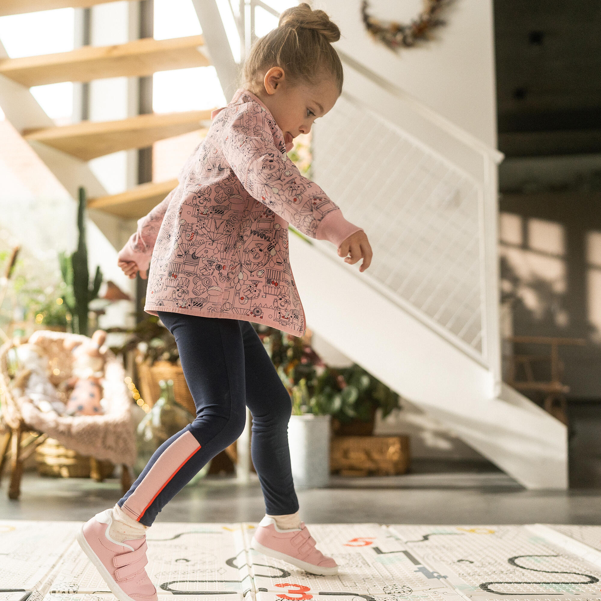 Otroška obojestranska jakna z zadrgo - rožnati potisk