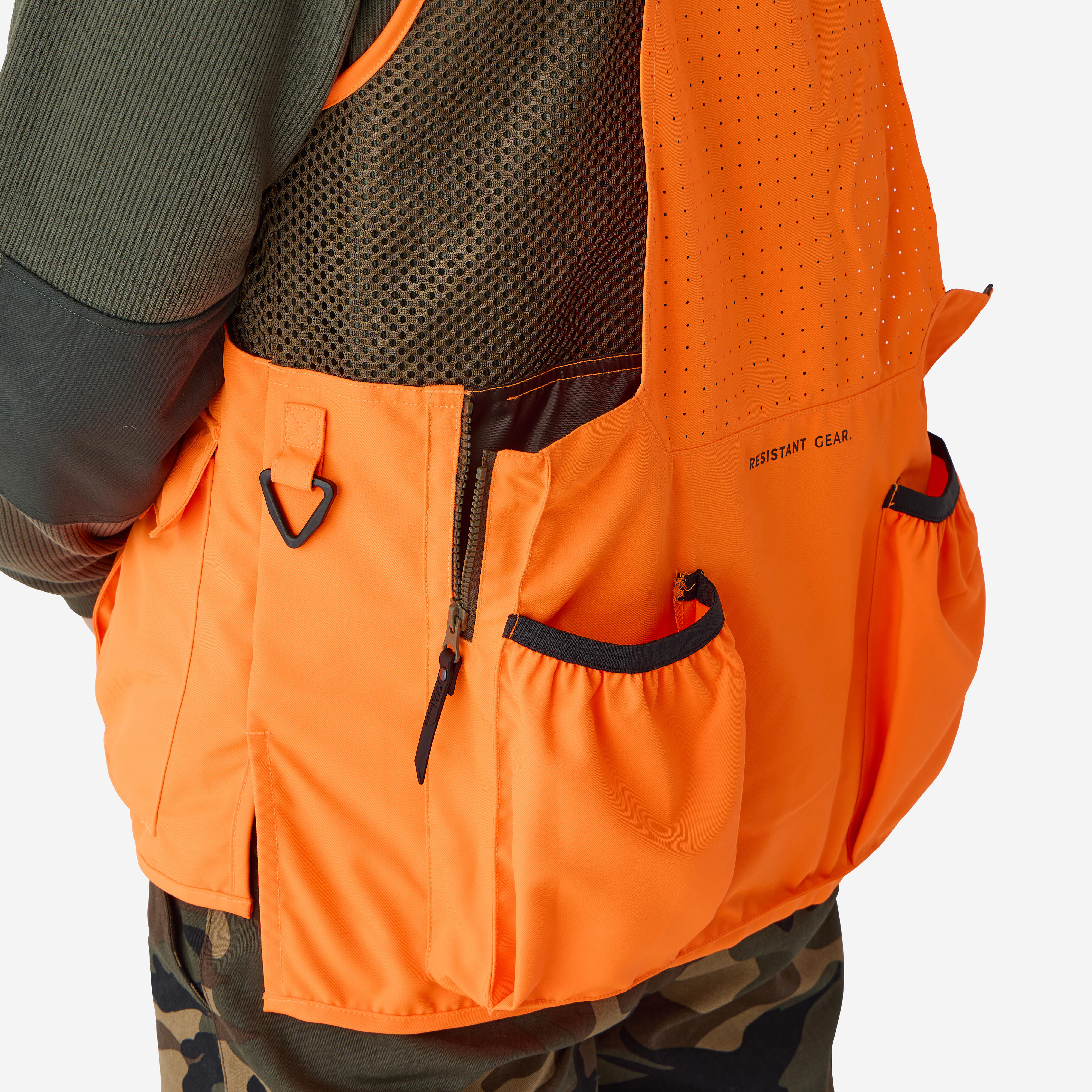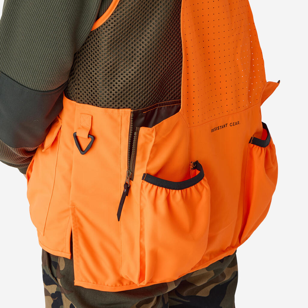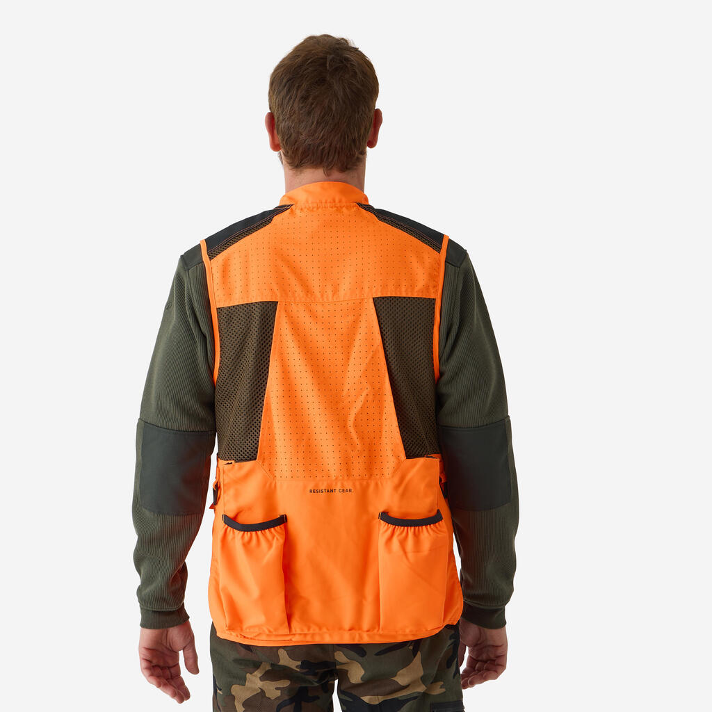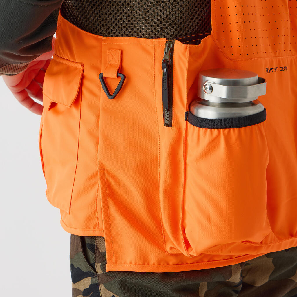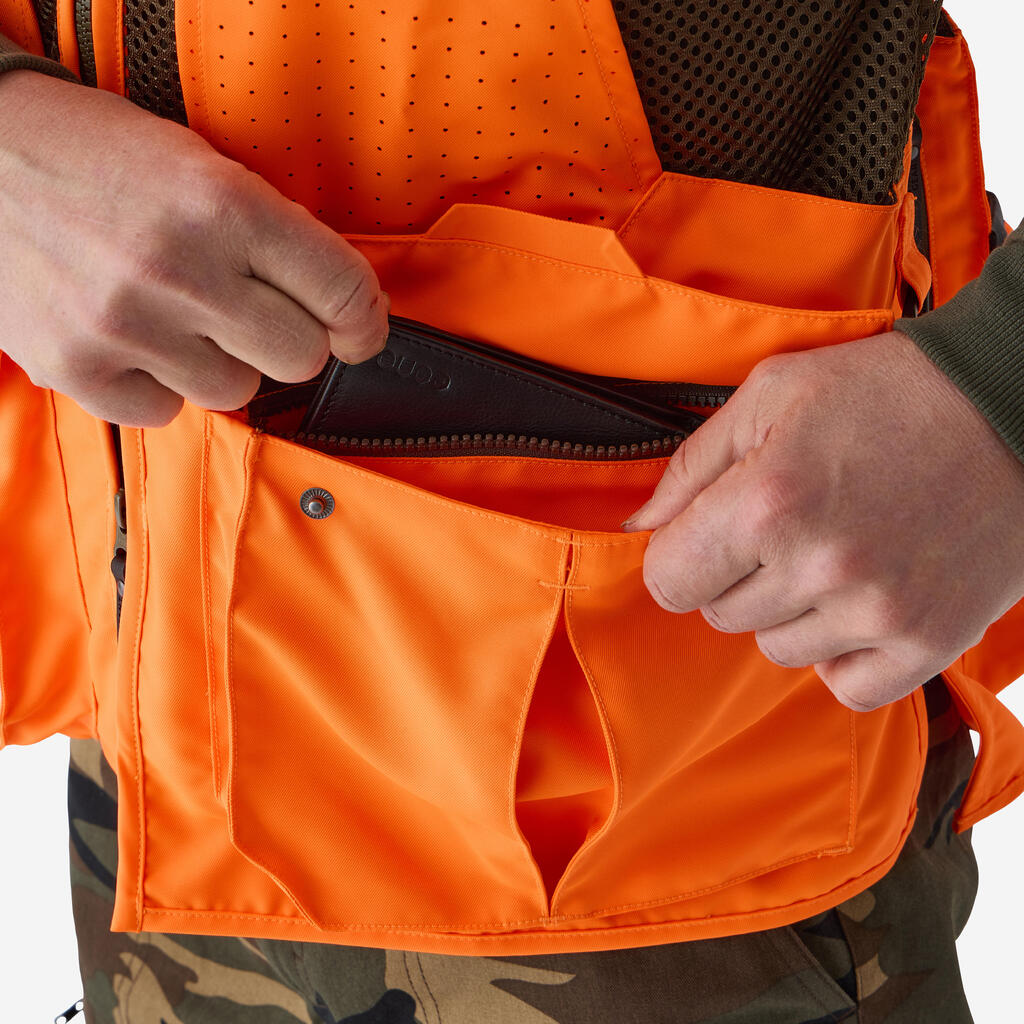 Živo oranžni všitki so skladni s standardom OZO in skrbijo za večjo vidnost in varnost med lovom. Majhna teža (650 g v velikosti L) in zračnost.
