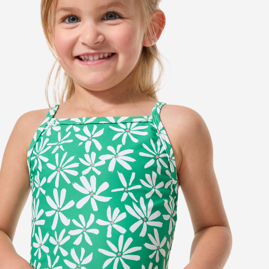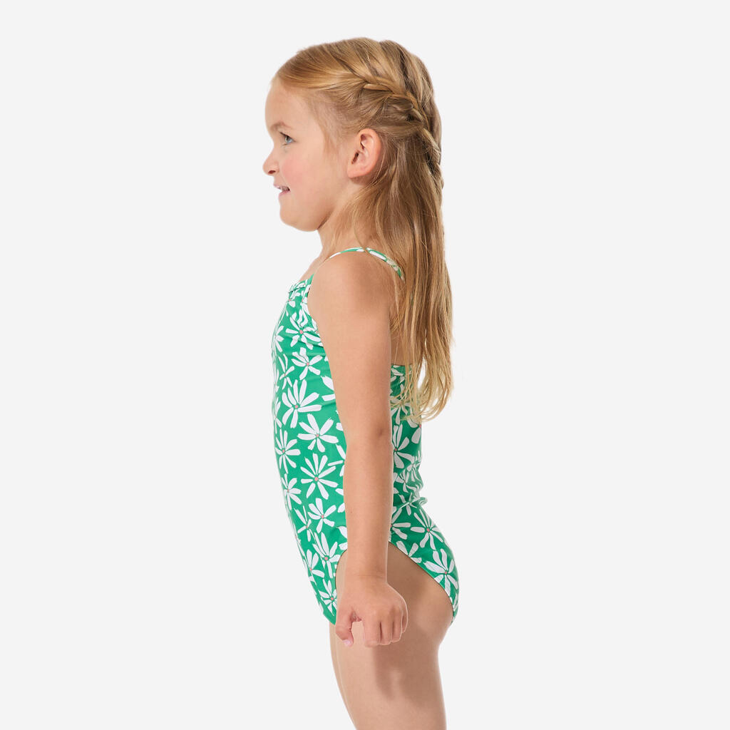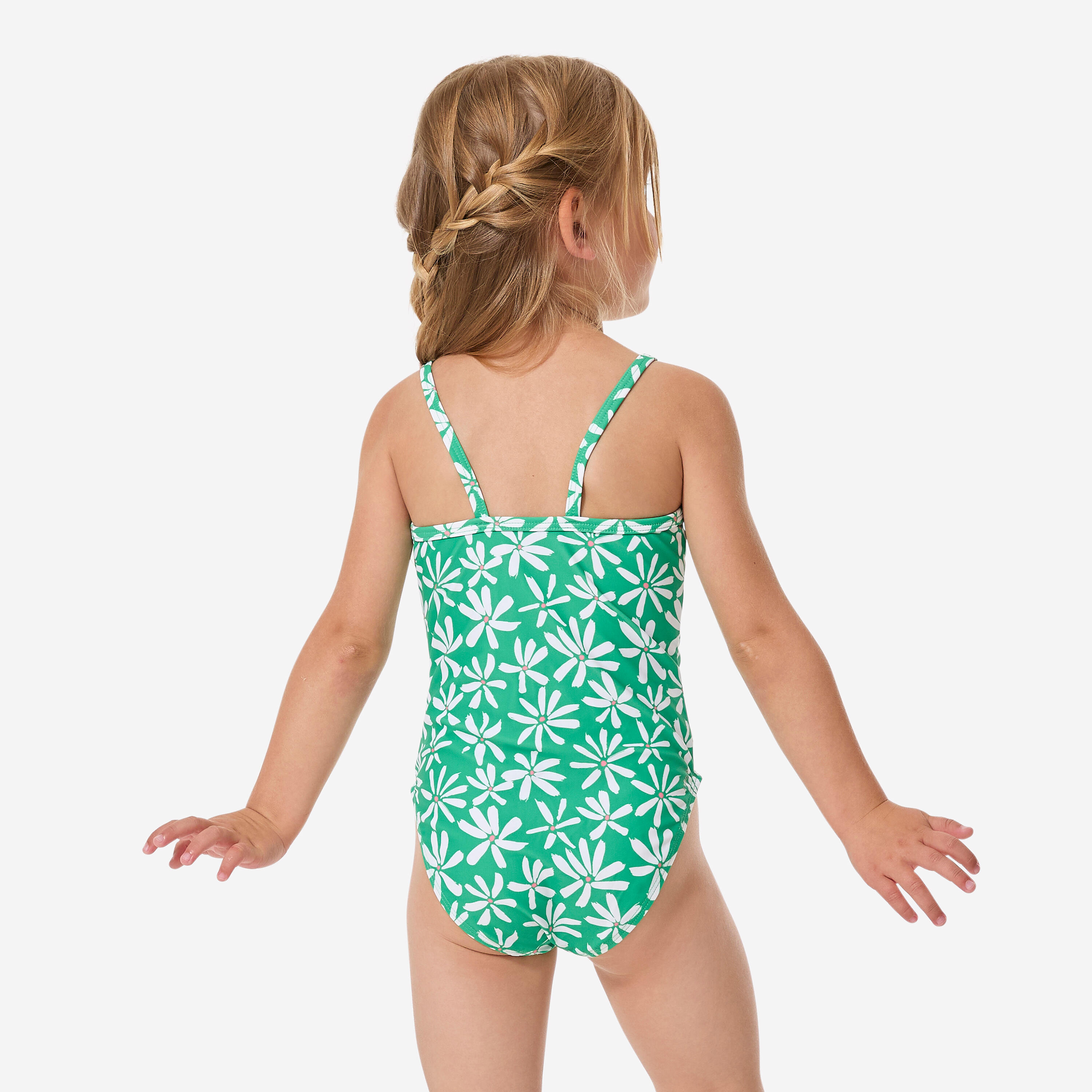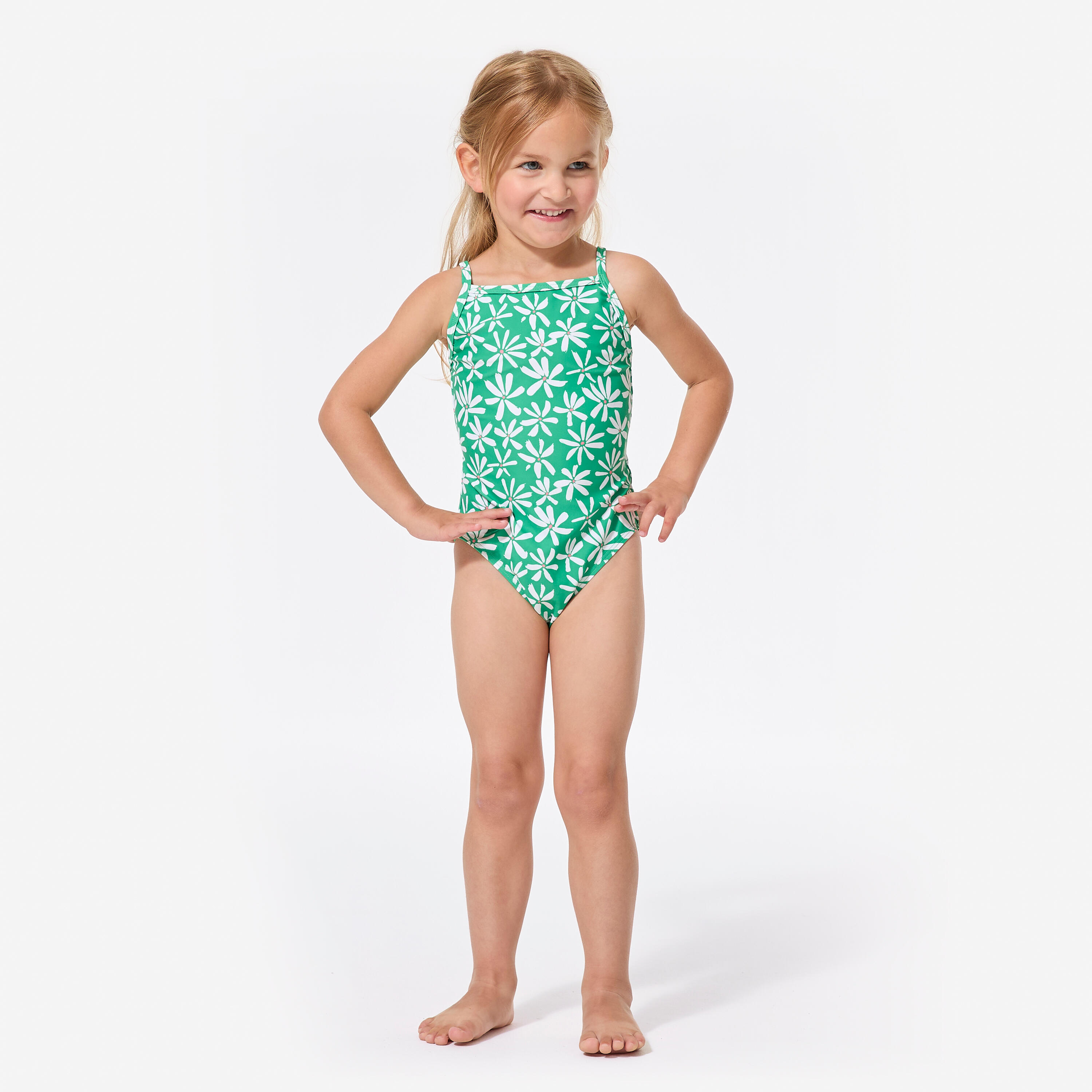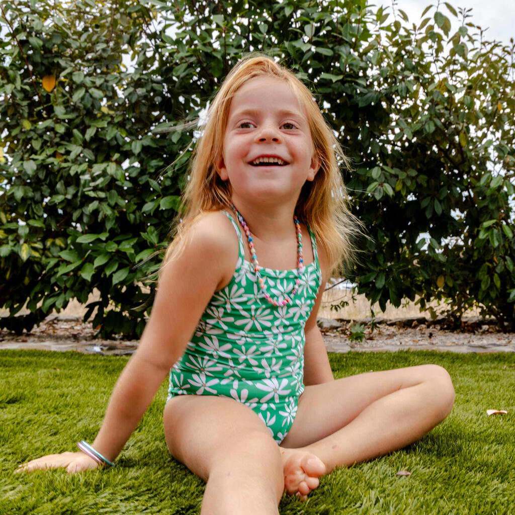 Njene prve enodelne kopalke s potiskom in tankimi naramnicami, ki se ne prekrižajo na hrbtu, zato omogočajo enostavno oblačenje.
