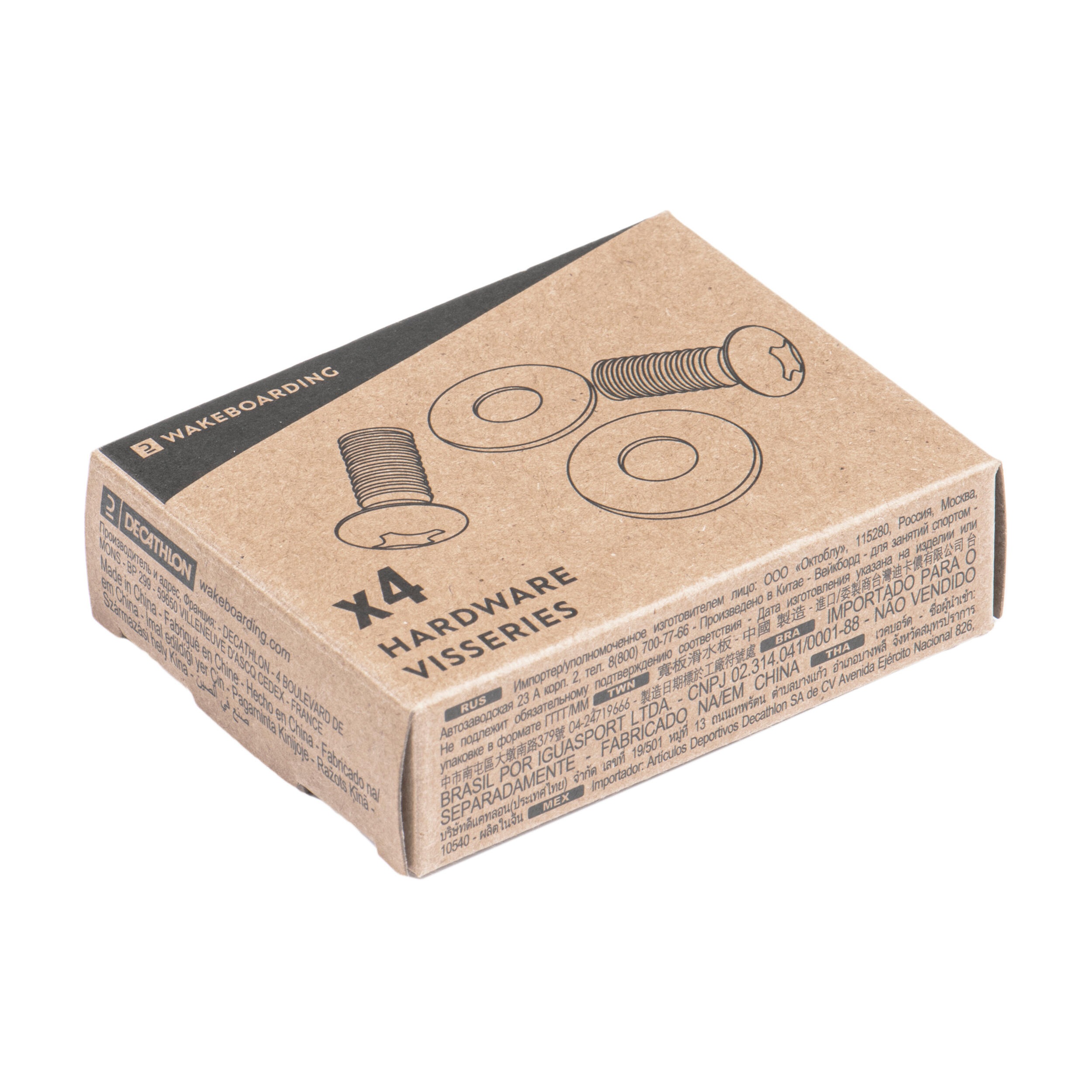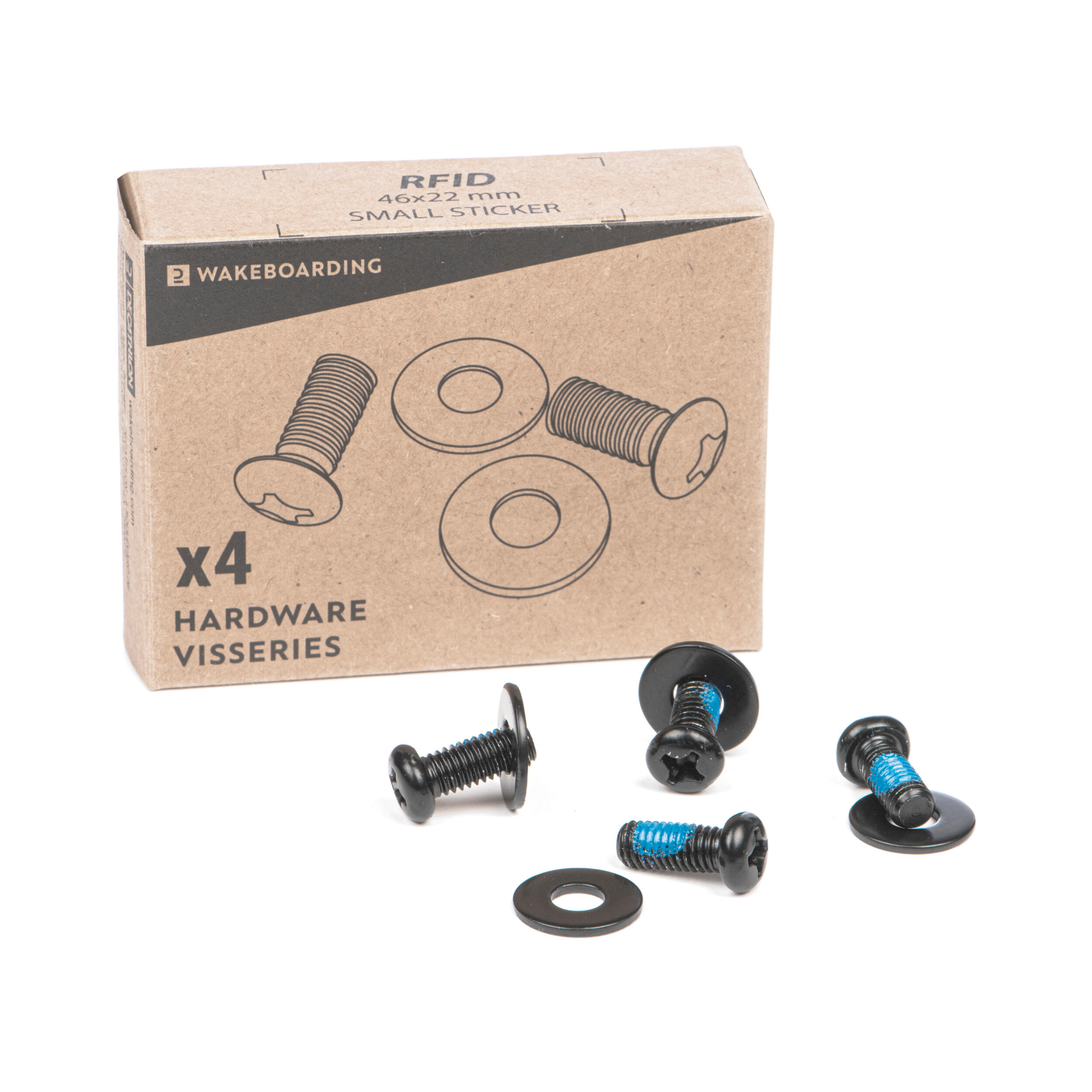 Komplet štirih vijakov je zasnovan za pritrjevanje odprtih vezi 100 (ref. 8603611) na wakeboard desko.