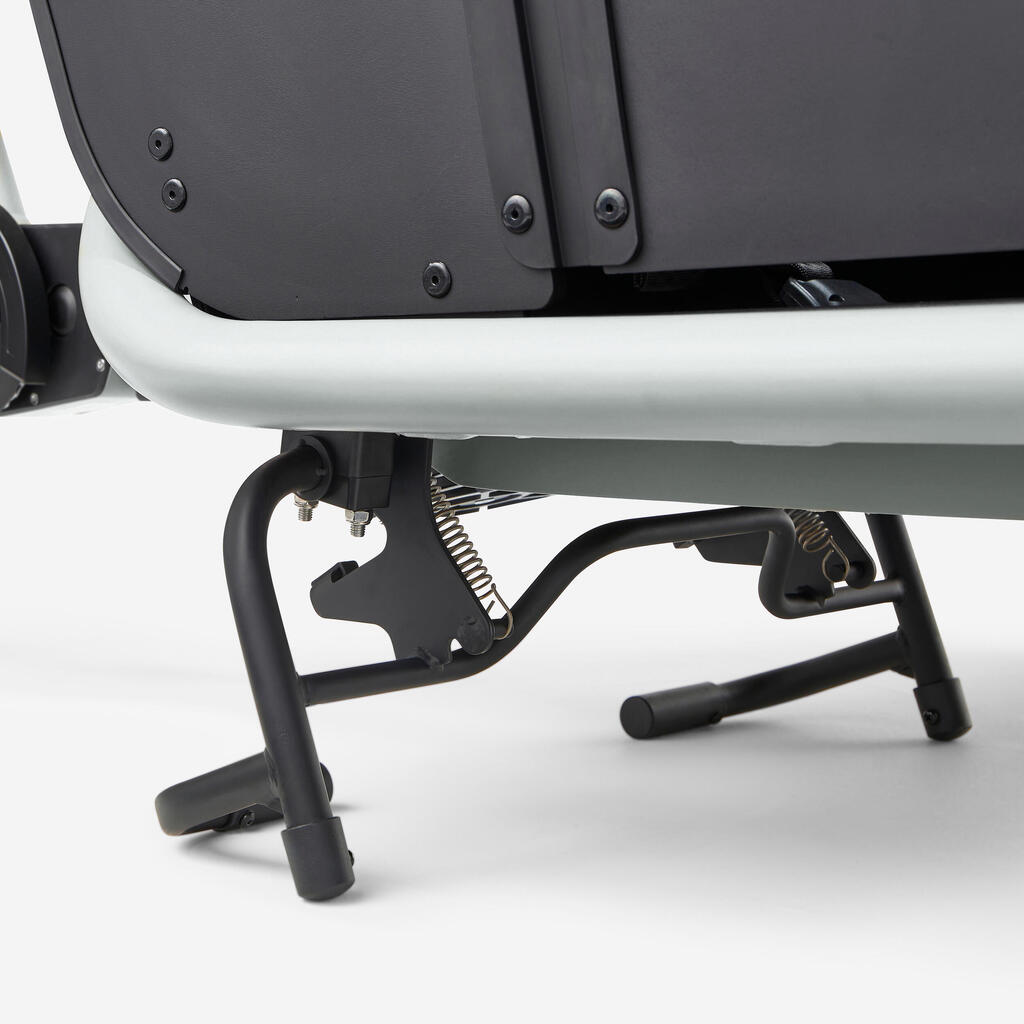 Oporno stojalo je posebej zasnovano tako, da ga lahko kar se da enostavno postavite in zložite. Njegova oblika omogoča, da kolo brez napora postavite na stojalo, tudi pri največji obremenitvi. Zagotavlja zelo dobro stabilnost, tako da lahko vaši otroci samostojno in varno vstopijo in izstopijo iz sprednjega dela za prevažanje.