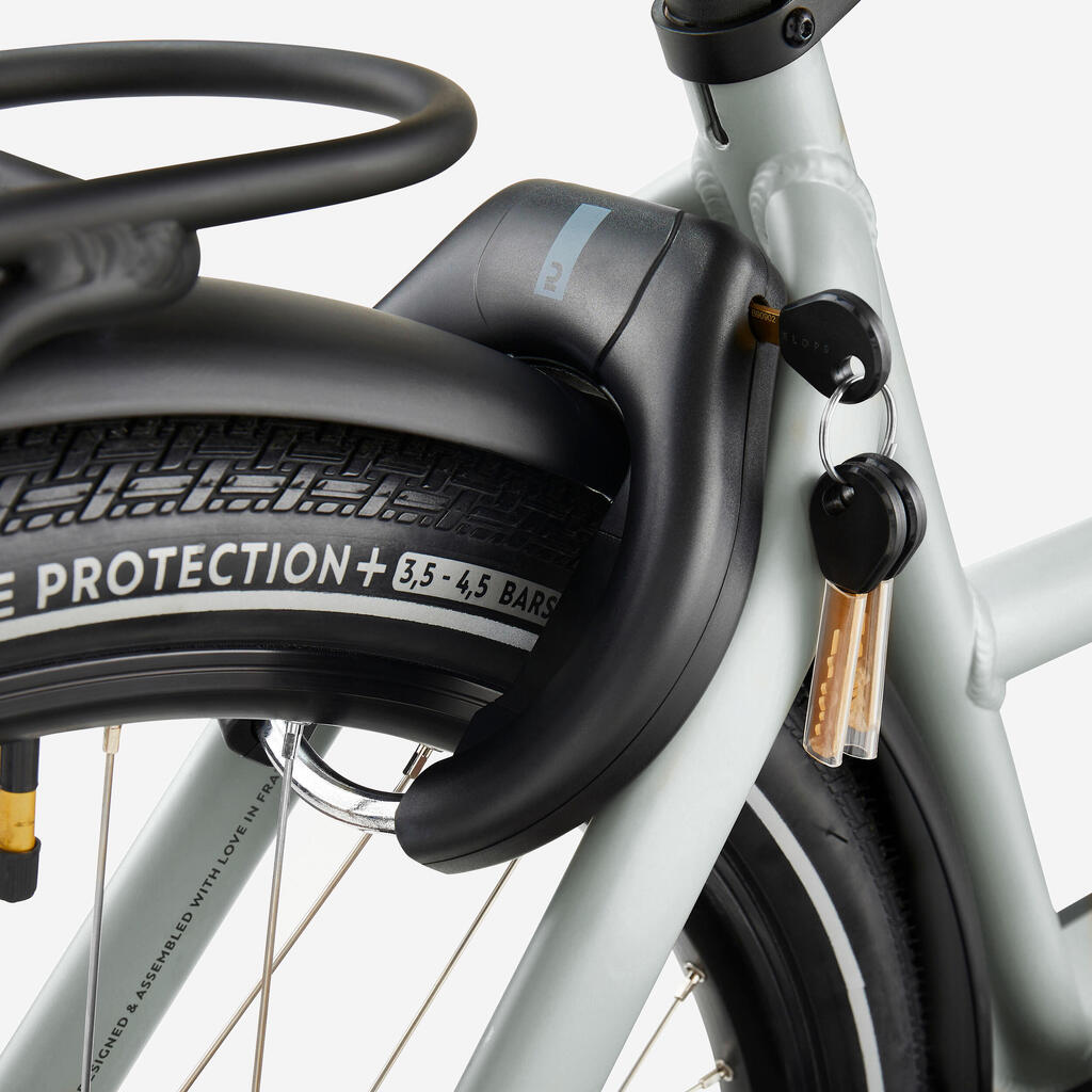 Kolo je opremljeno s fiksno ključavnico okvirja tipa Ringlock, ki zaklene kolo. Ključ za ključavnico je enak kot za baterijo. Za pritrditev kolesa na fiksno točko lahko ključavnico Ringlock uporabljate skupaj z verigo 900 Plug-In Chain (referenca 8767728). GPS vam omogoča, da kadar koli najdete vaše kolo.