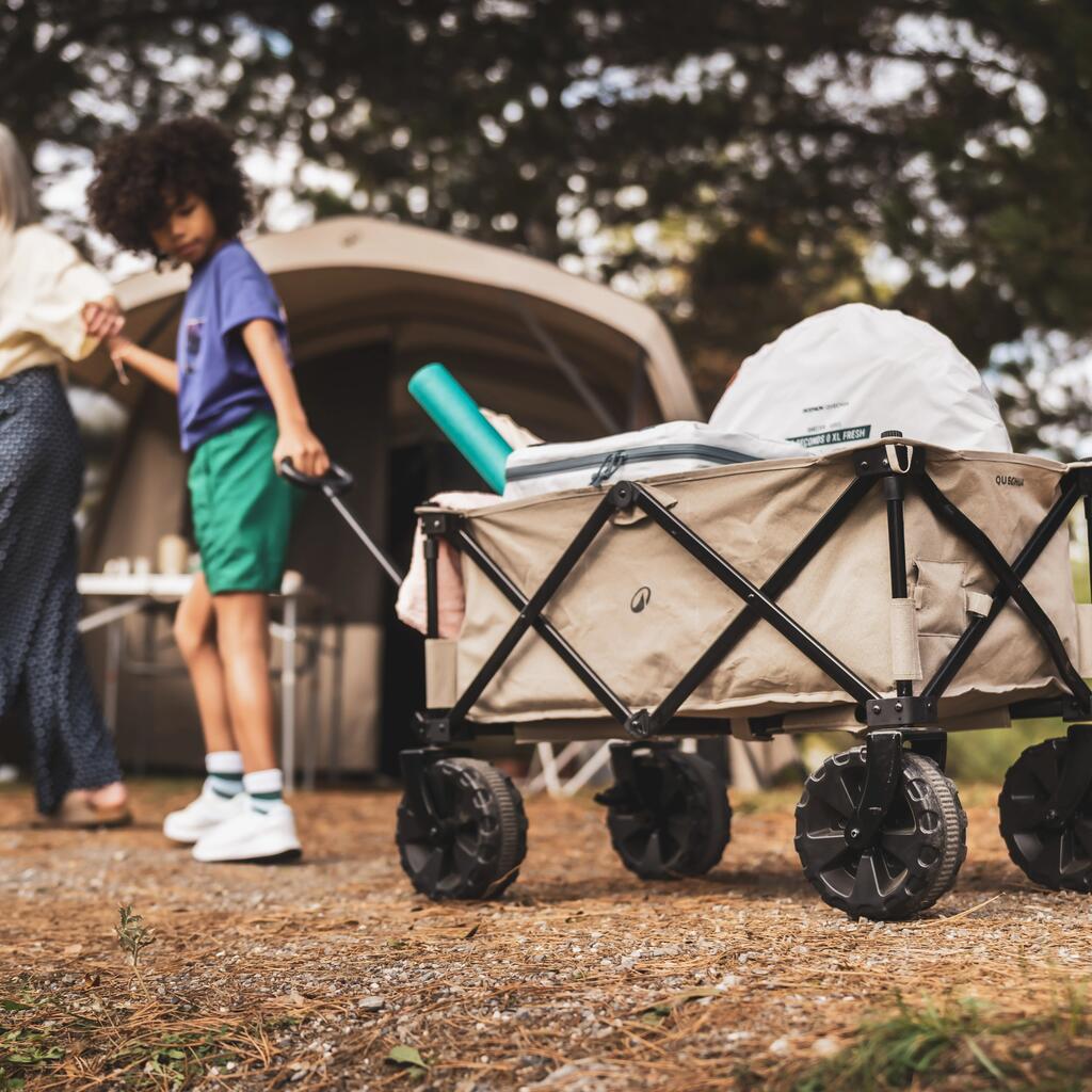 Voziček za vse terene. Z njim boste zlahka vso svojo opremo pripeljali do kampa. Tudi velike šotore.Zelo kompakten, ko je zložen.