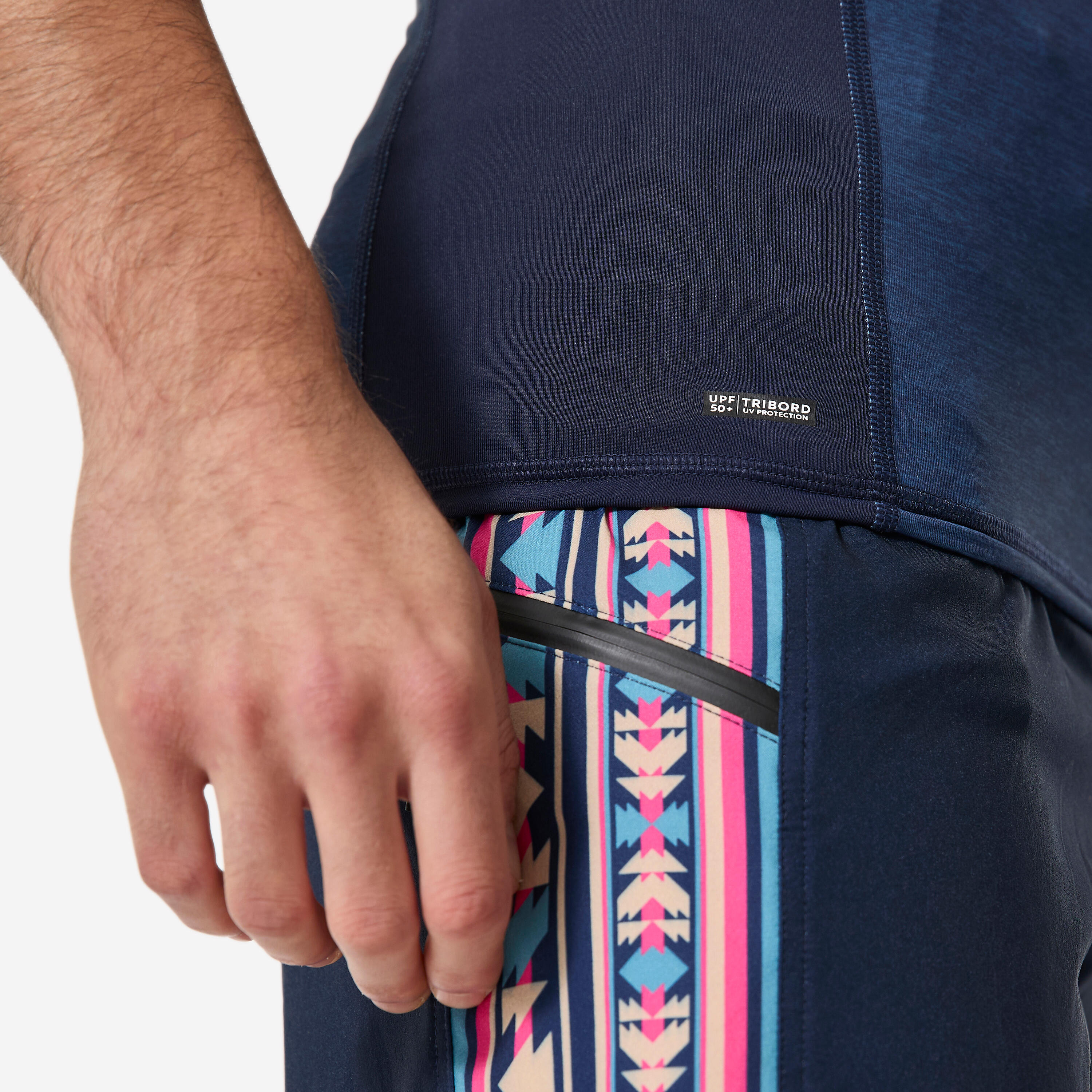 Prav tako lahko na njo pričvrstite vrvico plavalnih kratkih hlač in tako preprečite, da bi majica med deskanjem zlezla gor.