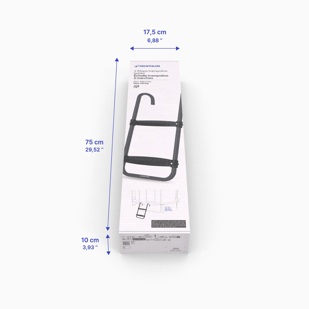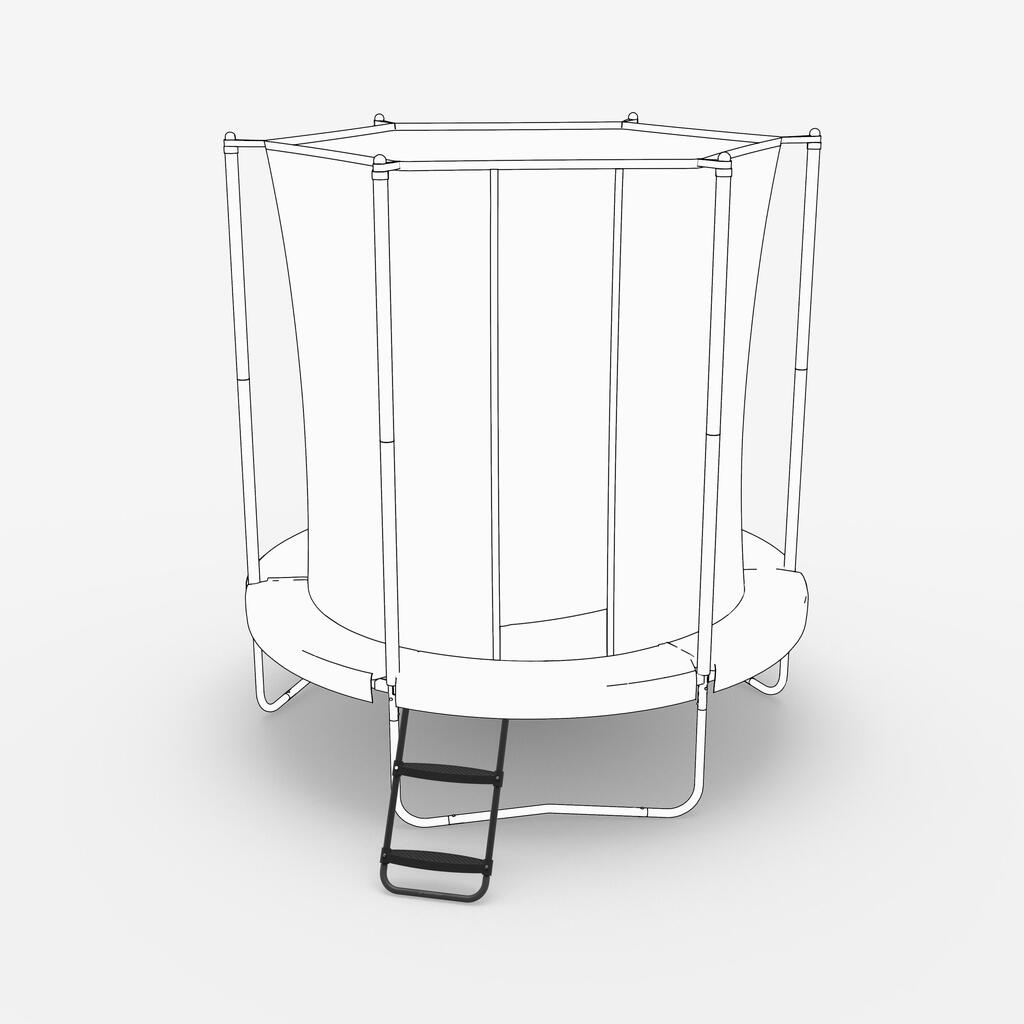Lestev je zasnovana tako, da se popolnoma prilega kovinskemu okvirju trampolina za odlično stabilnost. Nedrseči stopnici sta zasnovani za otroke, stare 3 leta in več. Njuna ploščata oblika omogoča večje udobje med uporabo. Lestev mora pritrditi odrasla oseba.