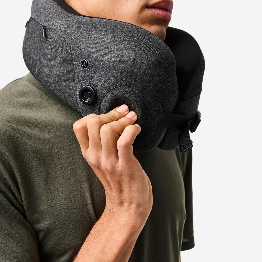 Napihljiva blazina za vrat se prilagodi vašim potrebam in obliki telesa: spominska pena, prilagodljiva višina ter kapuca, s katero si lahko naredite temo.