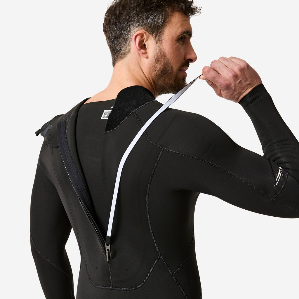 Zadrge in elementi za zapenjanje so laboratorijsko preizkušeni, da zagotovimo dobro odpornost na slano vodo. Za večje udobje med deskanjem (pri ležanju med veslanjem) smo zadrgo namestili na hrbtno stran obleke za deskanje. Poleg tega ima obleka zaščitno pregrado pod zadnjo zadrgo, ki preprečuje vdor vode!