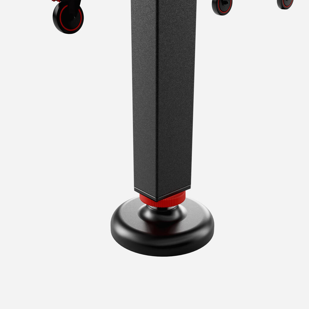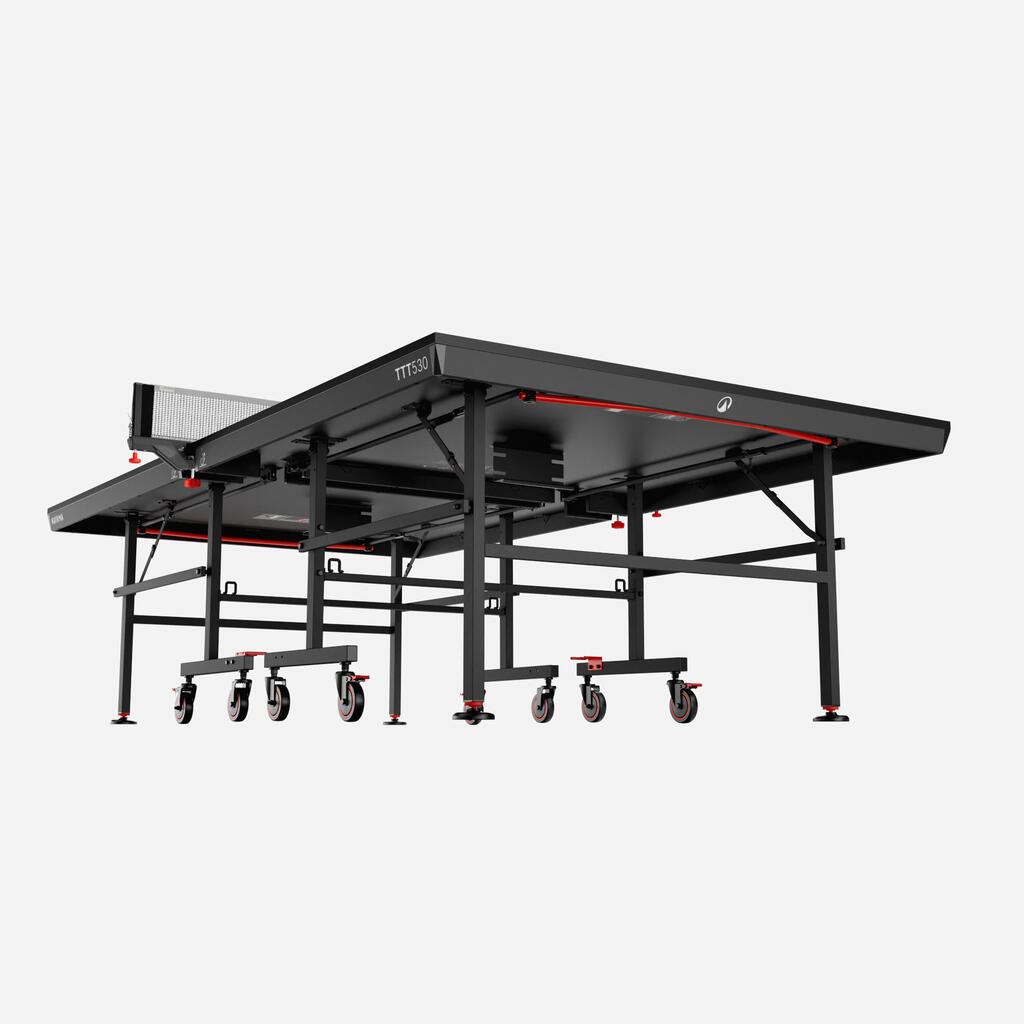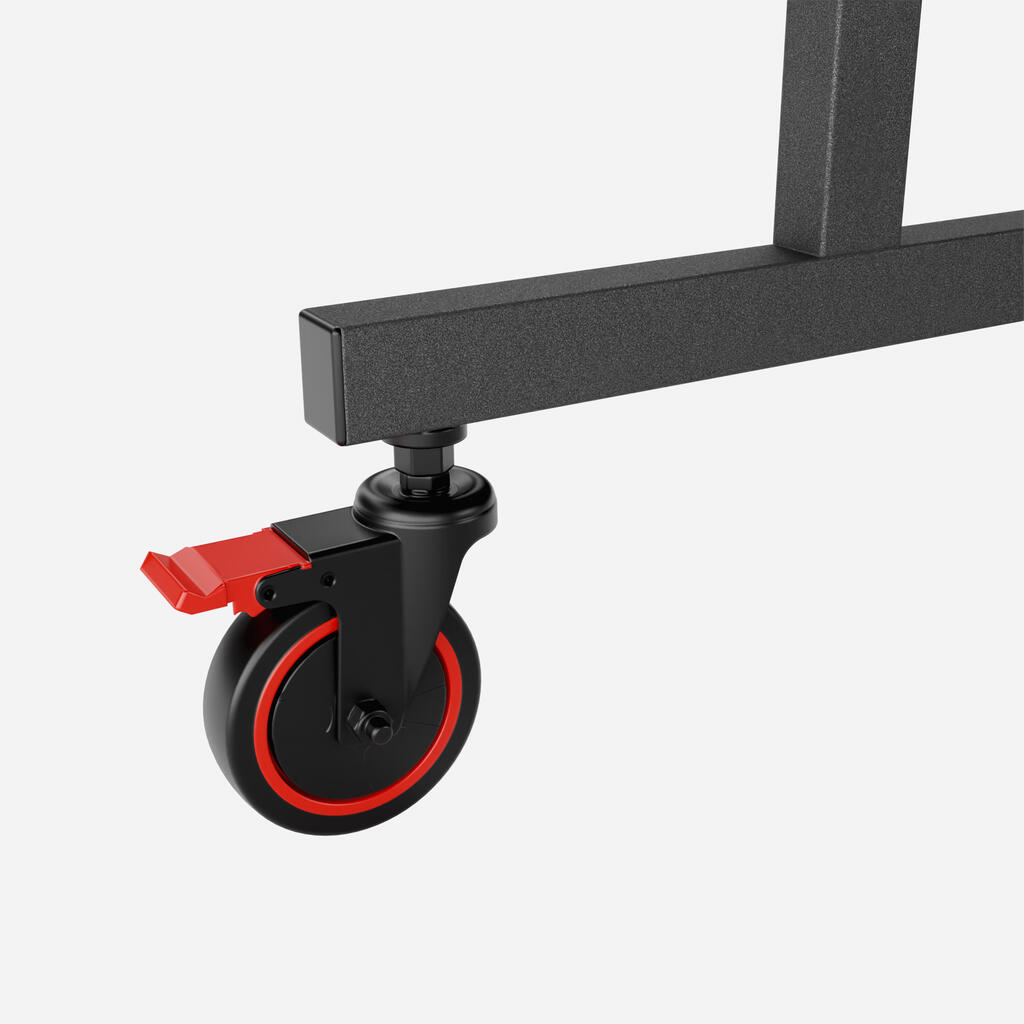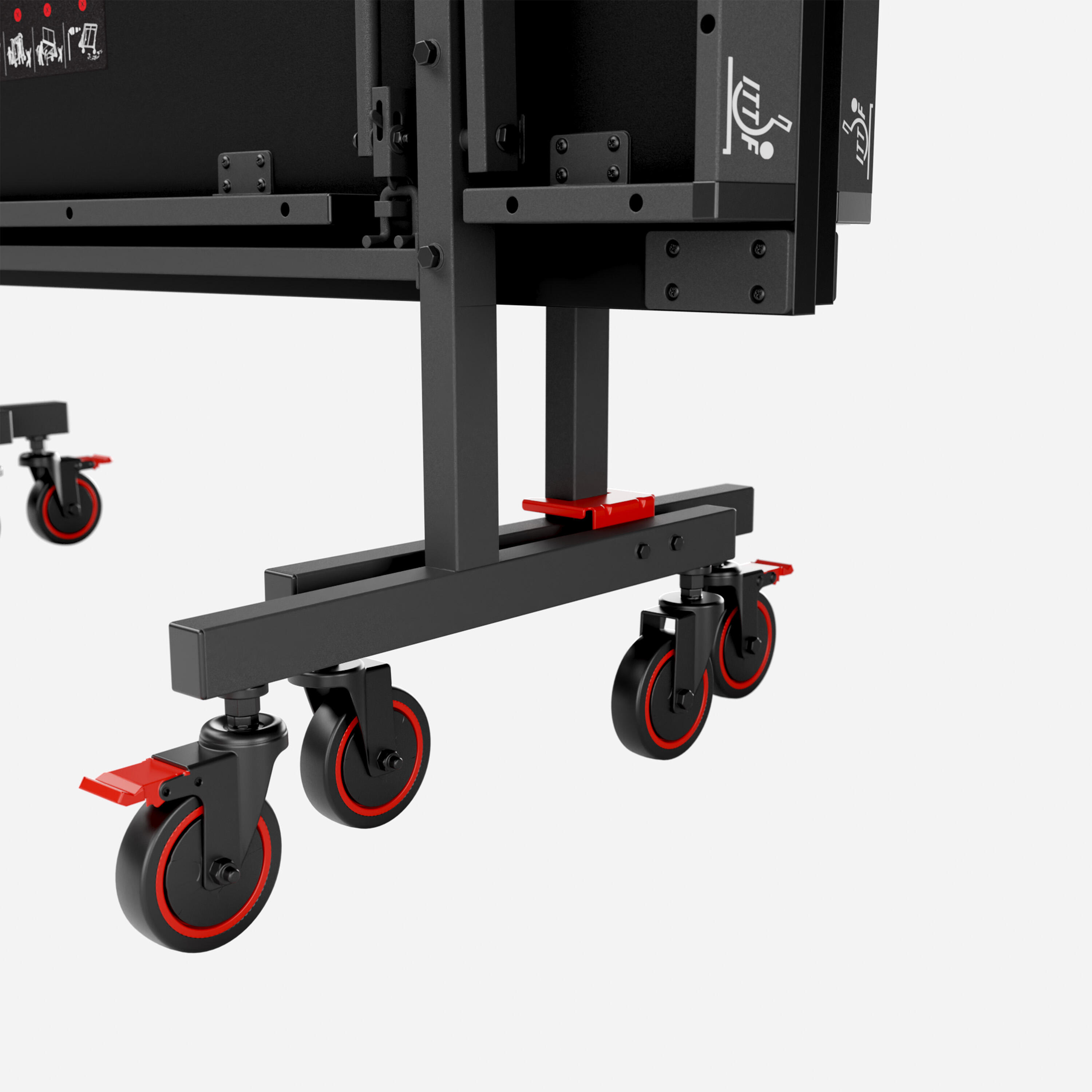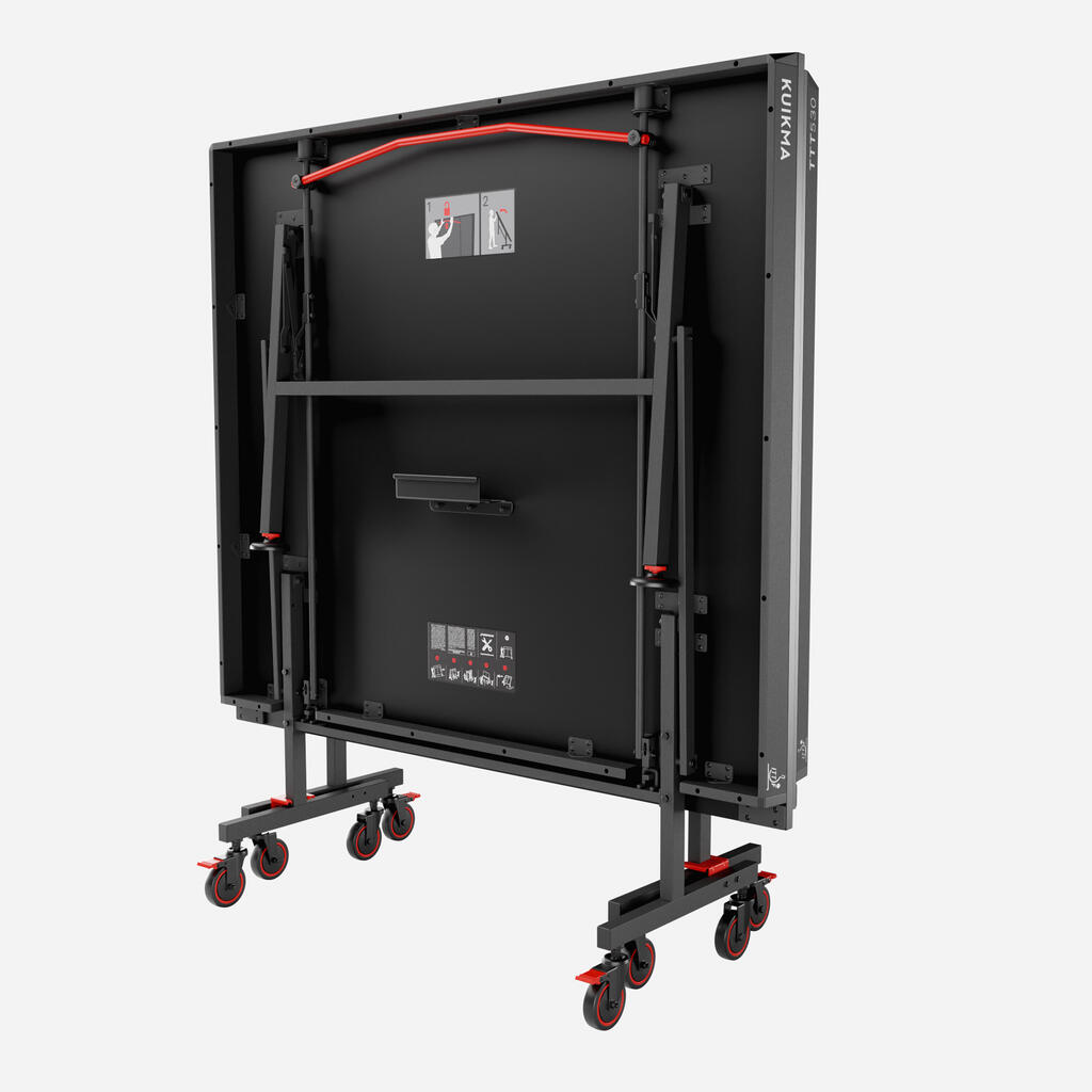 Ta novi centralizirani sistem omogoča hitro odpiranje in zapiranje, hkrati pa zagotavlja optimalno varnost. Zaradi intuitivne zasnove z rdečo palico pod mizo je mogoče mizno ploščo enostavno odpreti in zapreti v dveh korakih: Povlecite palico navzgor, nato pa povlecite mizno ploščo proti sebi, da jo odprete.Ta sistem je certificiral laboratorij v skladu s standardom EN 14468-1.Zložite lahko samo eno ploščo in igrate sami.