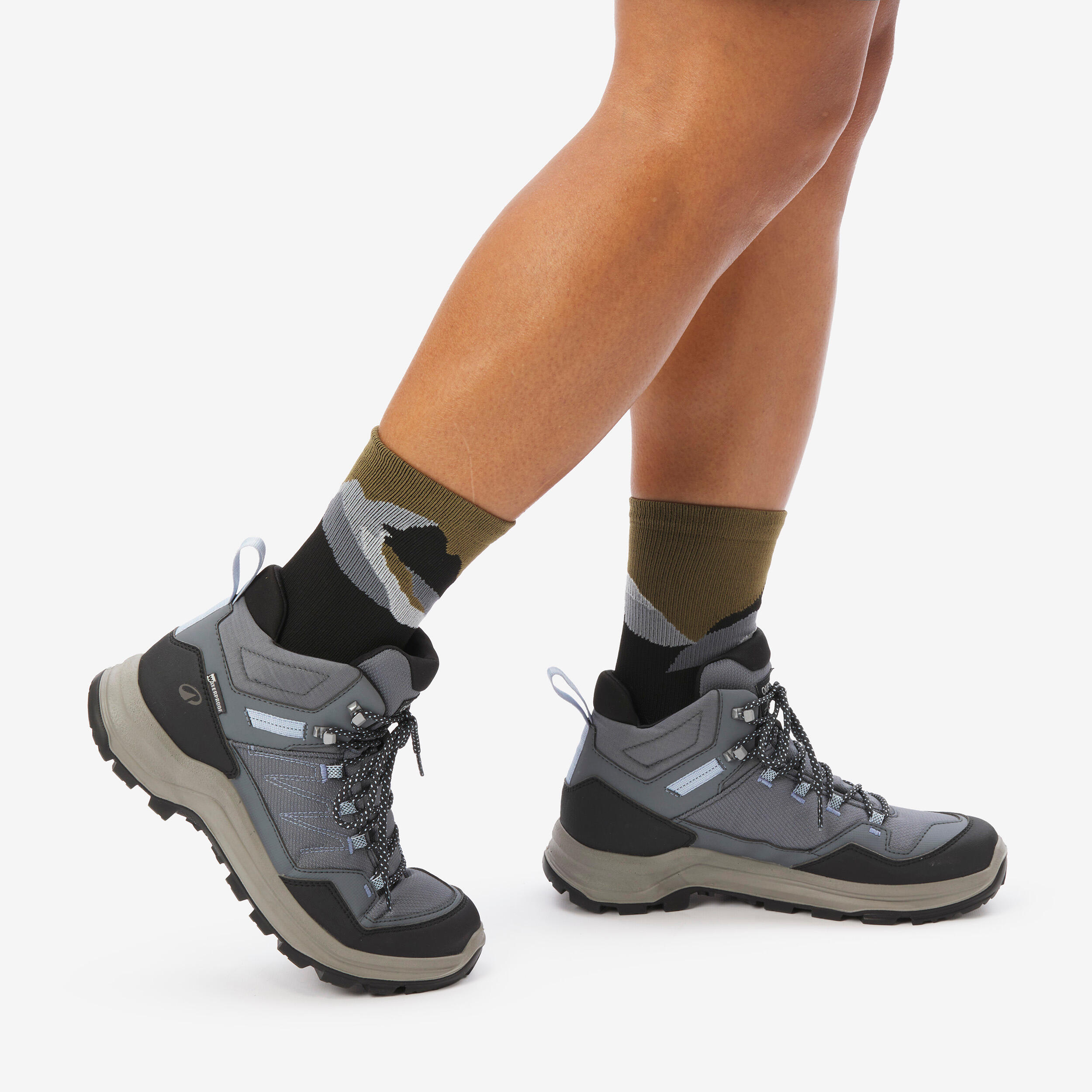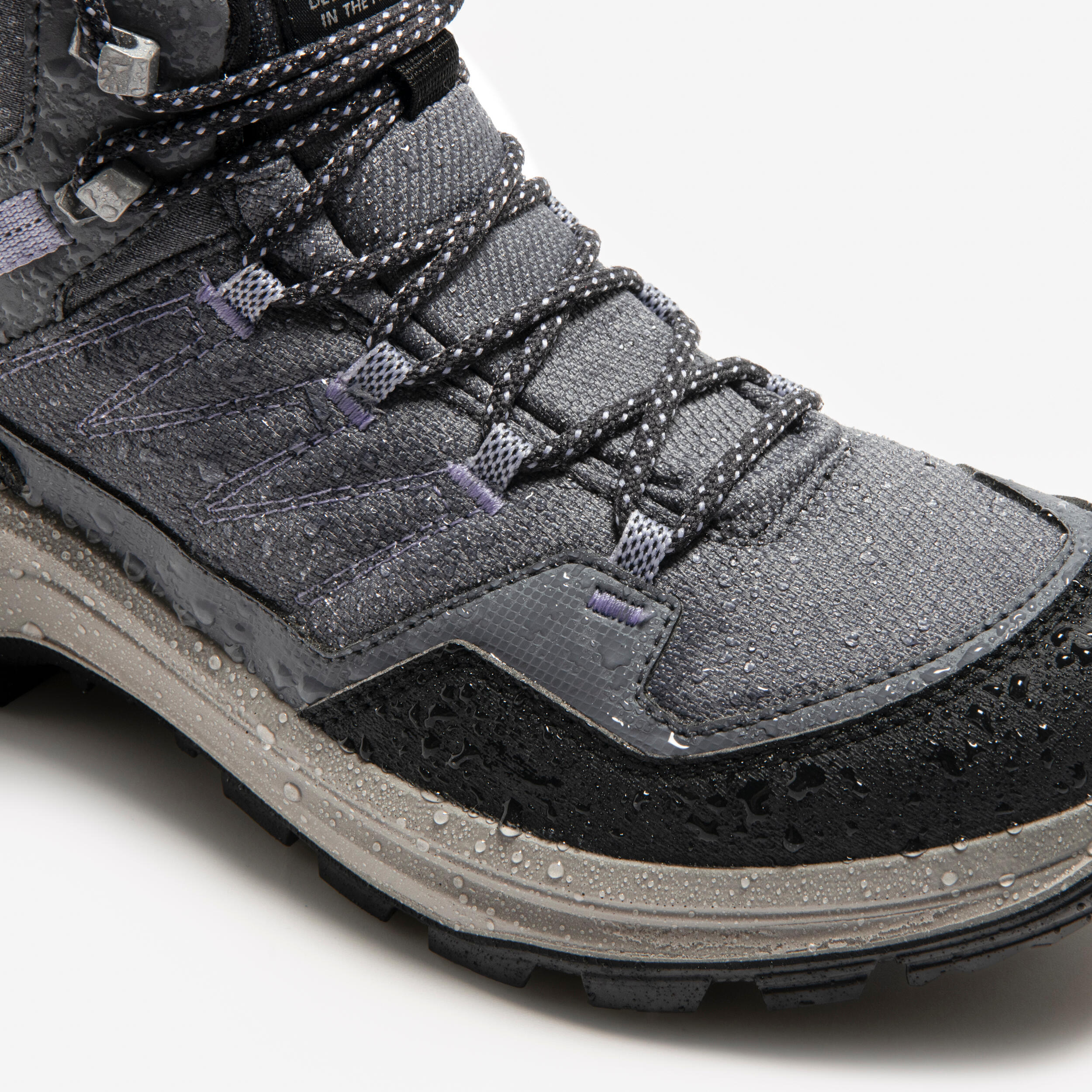 Da bi stopala ohranili suha, obujte vodoodporne gamaše ali kratke gamaše, ki prekrijejo zgornji del čevlja in preprečijo vdor vode, kamenčkov in peska. Priporočamo, da vodoodpornost dvakrat letno obnovite s pomočjo spreja za zagotavljanje vodoodpornosti (najdete ga na Decathlonovi spletni strani), s katerim boste obnovili vodoodbojnost in preprečili pojav madežev.