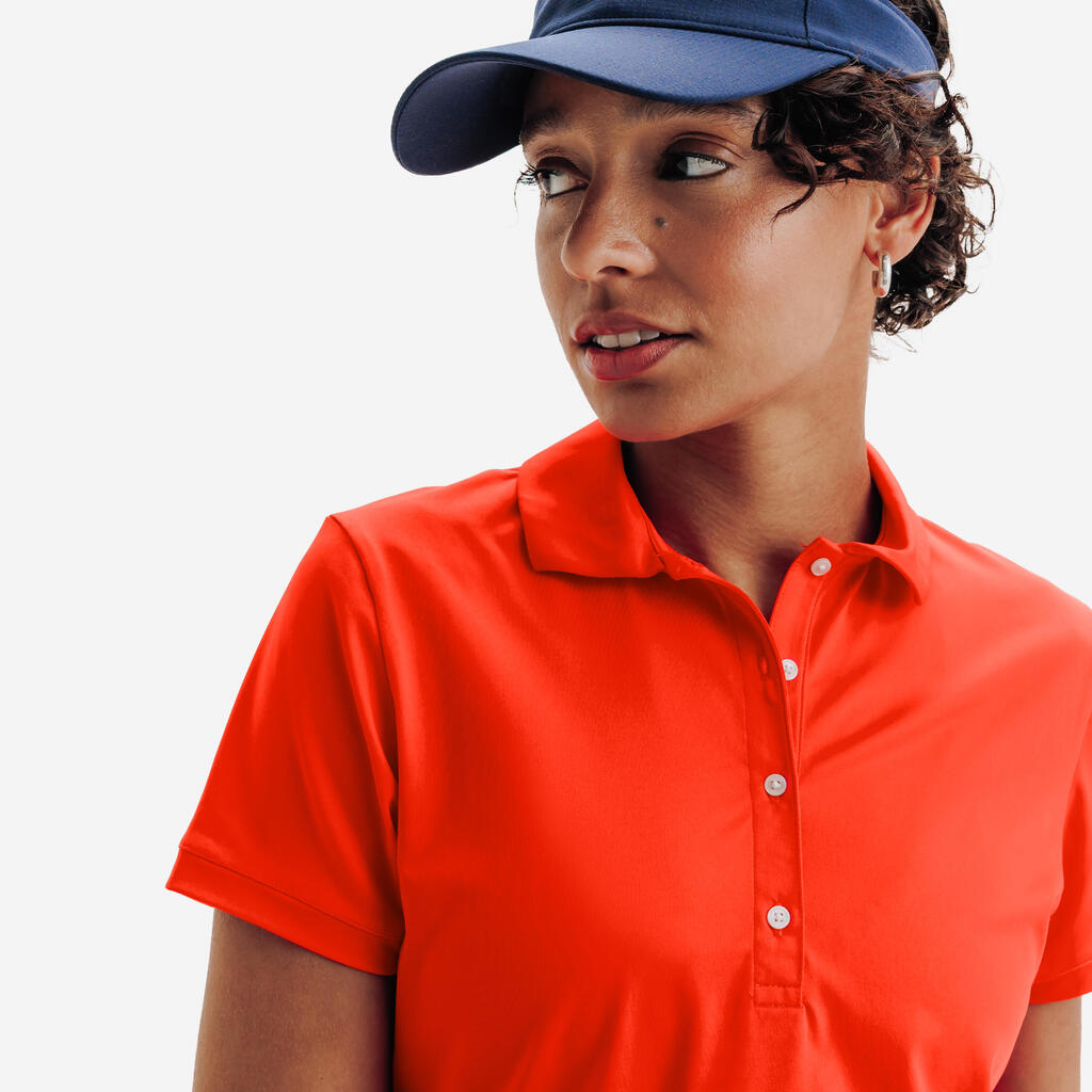 Polo majica WW500 nudi ženstven in eleganten kroj, hkrati pa ohranja športni pridih.