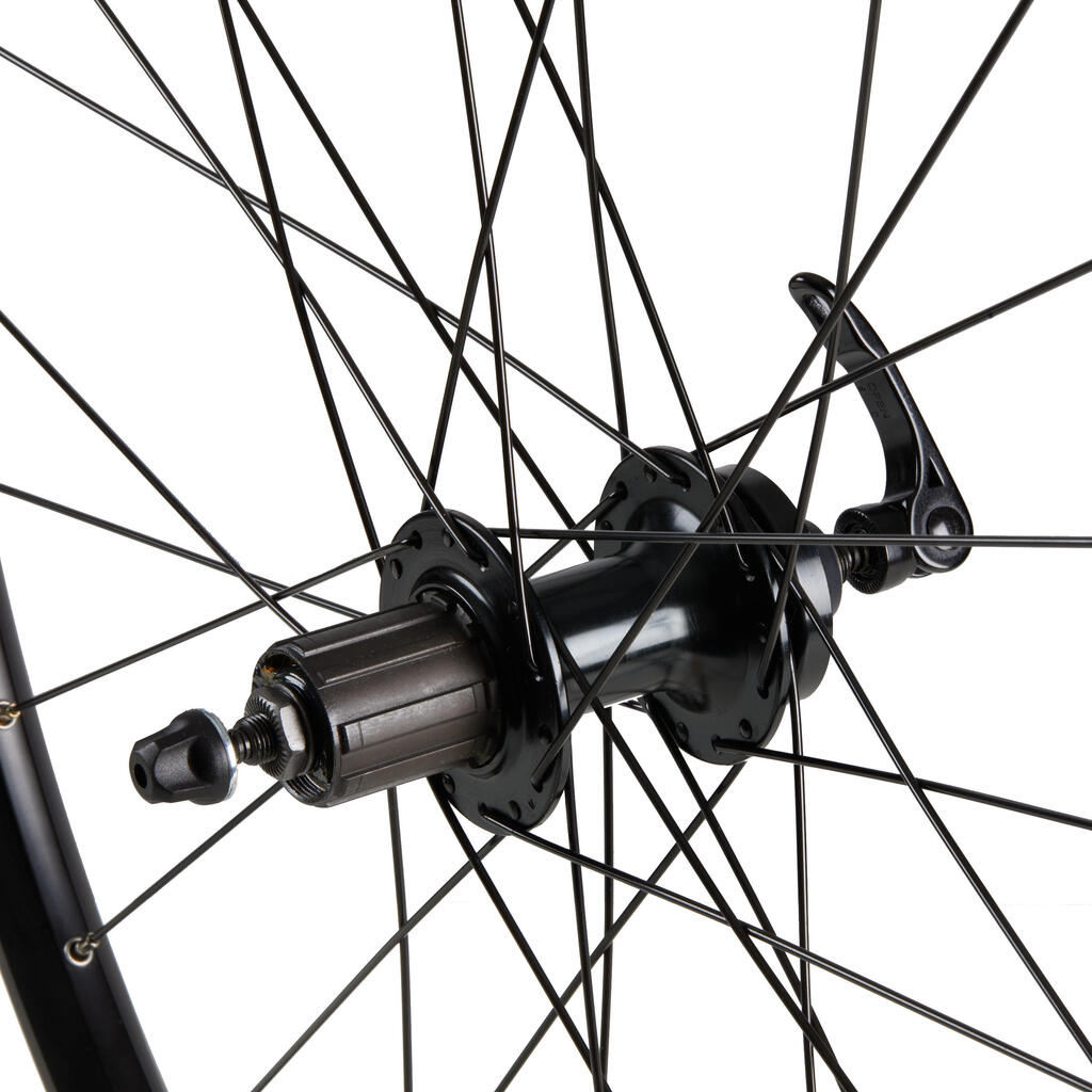Premer ETRTO: 584 x 23c. Tip obroča: dvoprekatna stena, 6063 aluminij, črn, prevlečen. Premer odprtine ventila: 6,5 mm. Število naper: 32 cm. Dolžina: 292 levo in 290 mm desno. Material naper: nerjaveče jeklo / Črna. Oblika napere: dvojno pritrjevanje 2/1.7/2. Razporeditev: 3 - prekrižane. Ležaji: skodelični, konusni (1/4''). Združljivost z zavorami: Kolut. Združljivost: 7/8/9/10/11-stopenjski verižnik: 9 x 100 mm. Tip osi: 145 mm.