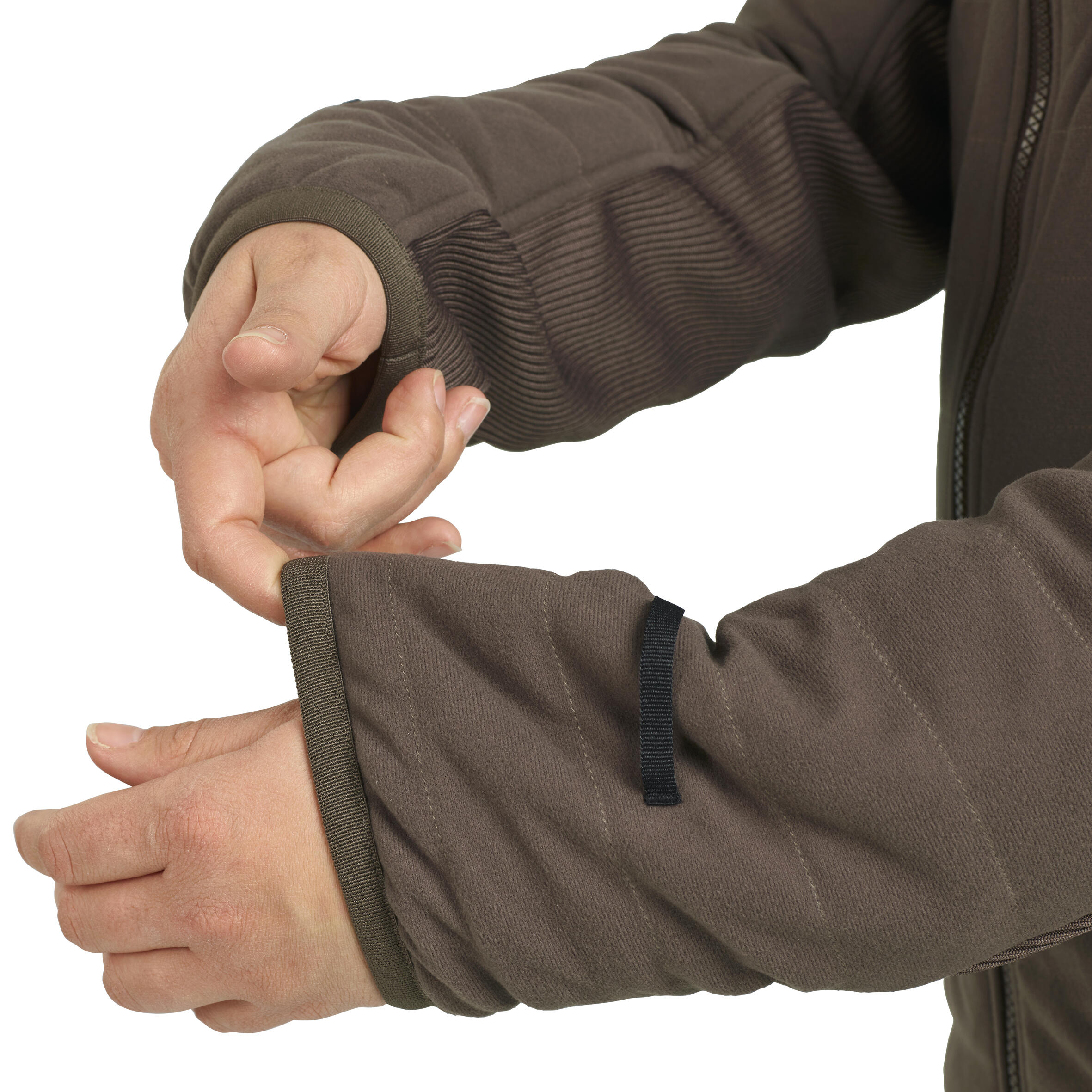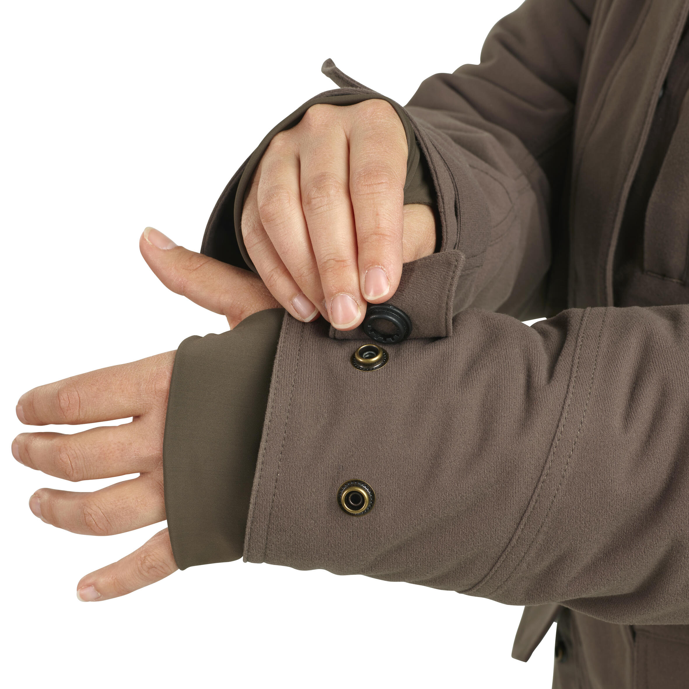 Visok ovratnik in kapuca sta podložena s sintetičnim krznom, ki skrbi za udobje. Rokavi z elastanom, odprtino za palec in patentom z zategovanjem ostanejo na svojem mestu in preprečijo izgubo telesne toplote.