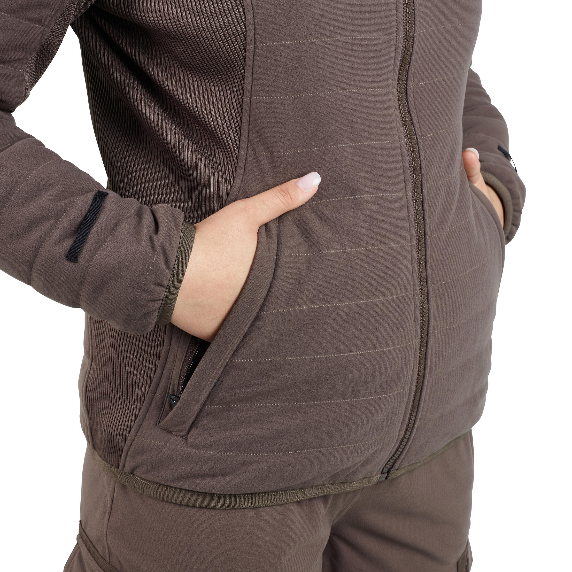 V številne žepe lahko pospravite radijsko postajo, dodatke in dokumente. Žepi so priročni in omogočajo varno shranjevanje. Jakna ima žep za ulov z zadrgo, vodoodporen prsni žep s kljuko za ključe, dva velika notranja žepa in dva viseča žepa z zavihkom za naboje.