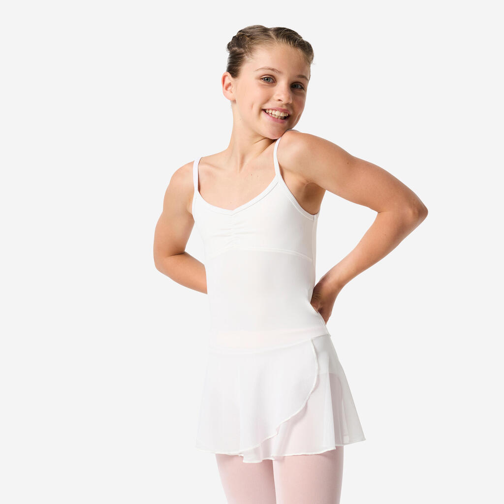 Idealen triko s krilom za vse stopnje spretnosti, od začetnic do naprednih plesalk. Tanke naramnice, nabran material in podložen sprednji del ter vgrajeno krilo, ki bo olajšalo opazovanje vaših gibov
