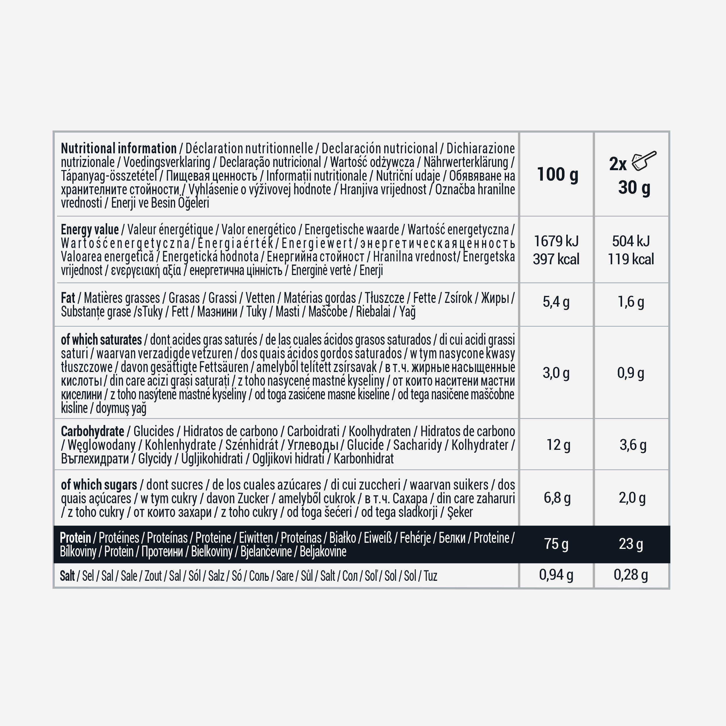 23 g beljakovin in 5,6 g BCAA / mešalnik za doseganje vaših ciljev. Sirotkine beljakovine so izdelane v Franciji. Koncentrat sirotkinih beljakovin prihaja iz Evropske unije. Samo 2 sestavini!