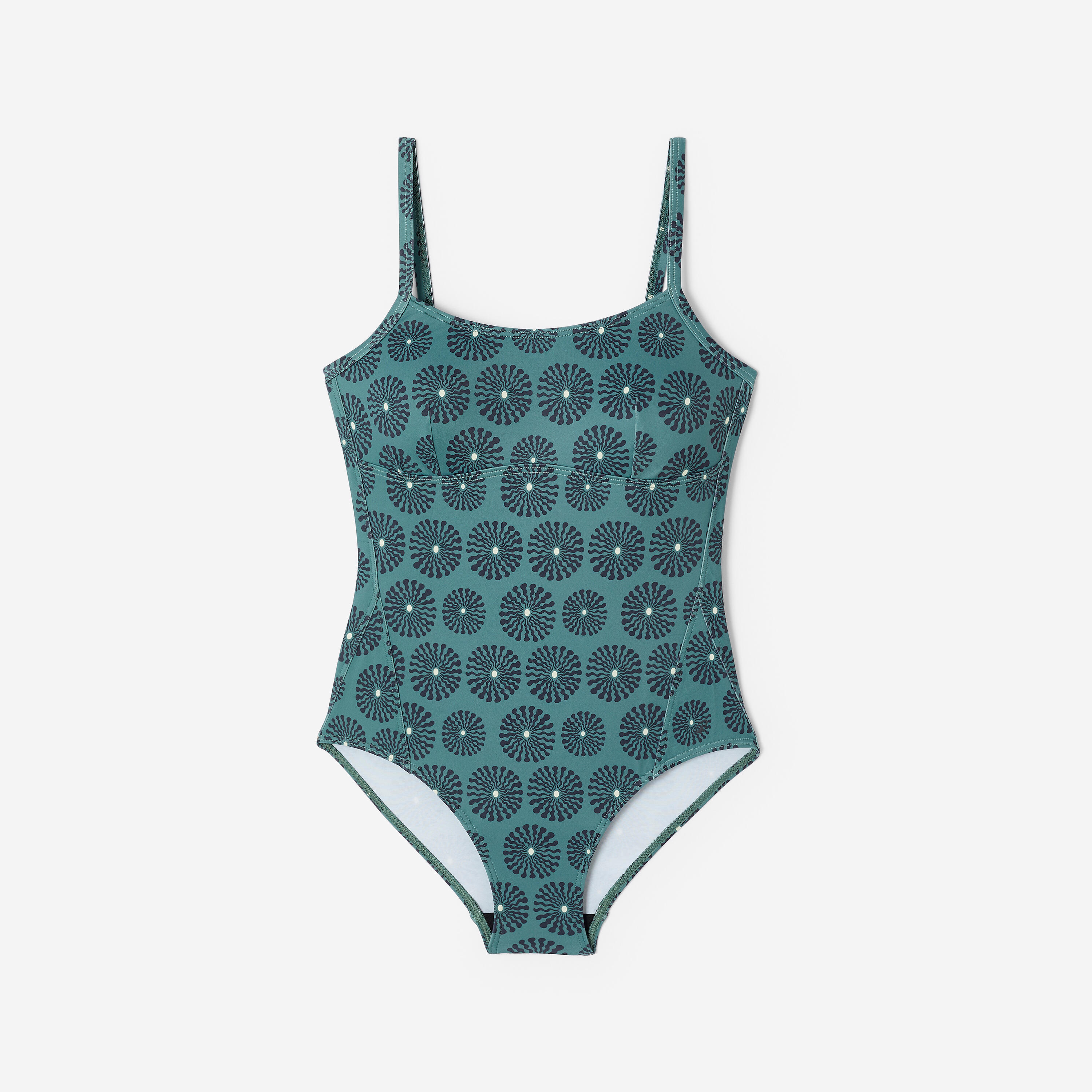 Enodelne kopalke imajo okrogel vratni izrez in prilagodljive tanke naramnice, ki jih lahko nosite v obliki črke X ali U. Odprt hrbtni del.