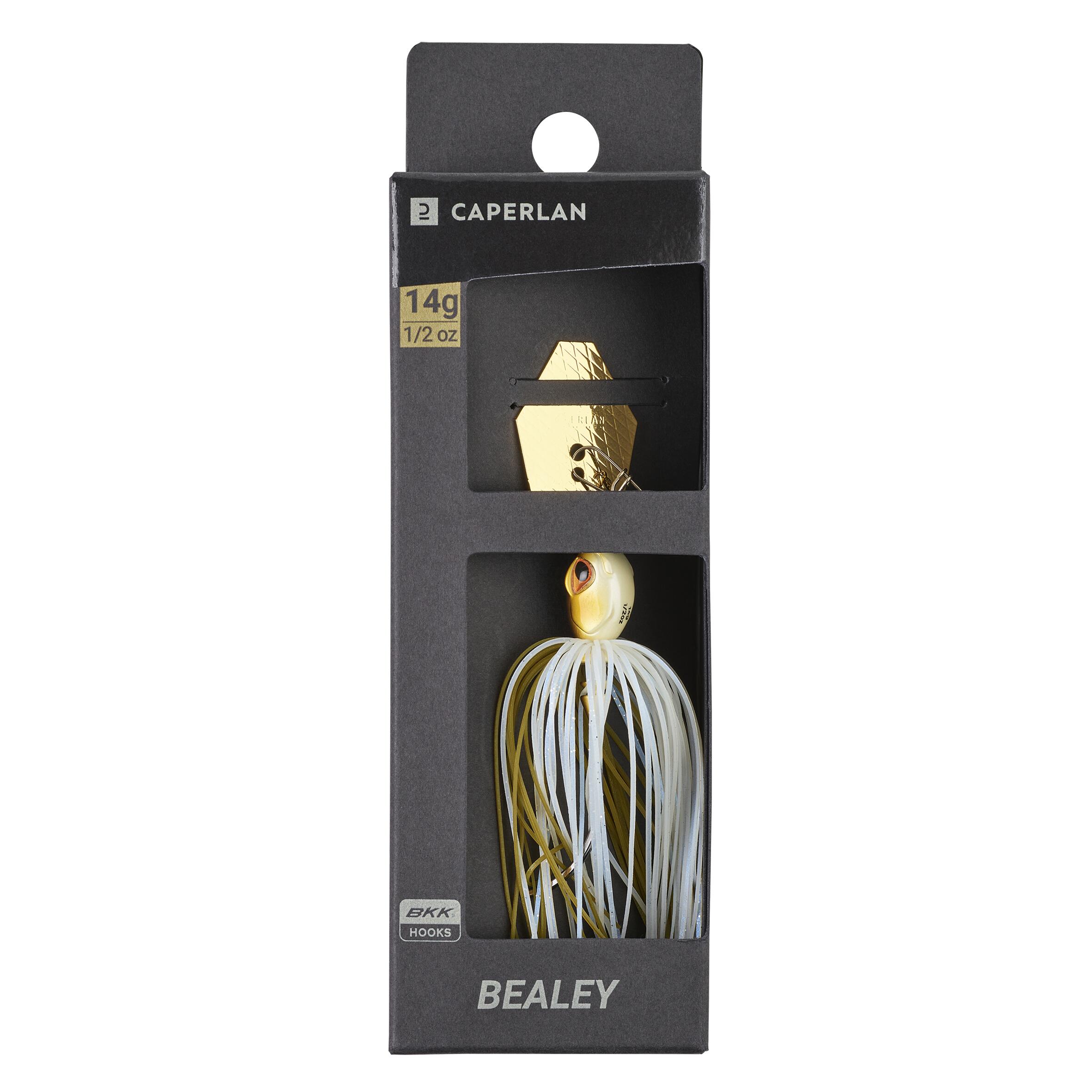 Teža neobtežene vabe: 14 g. Teža obtežene vabe s ploščico in sponko: 17 g.