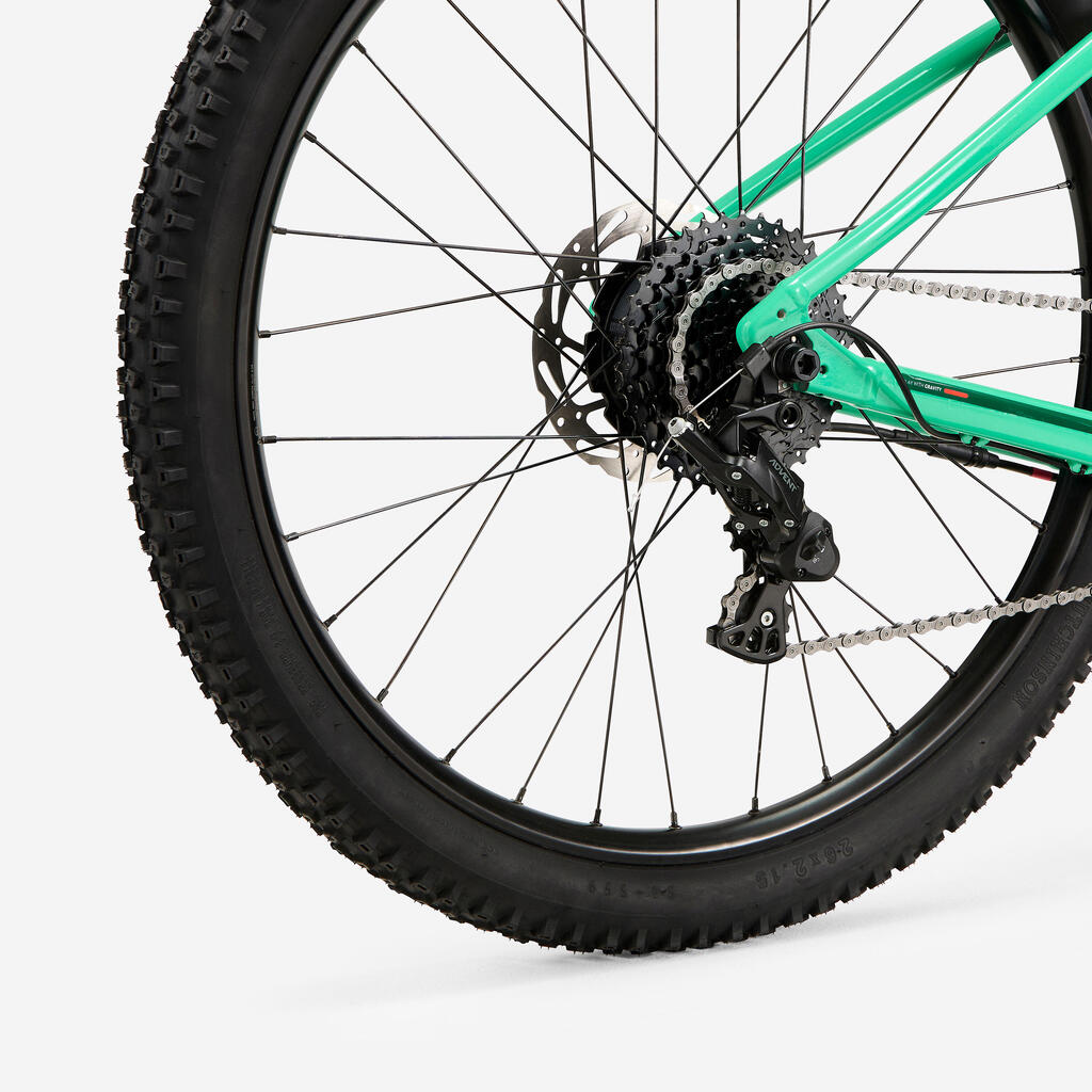 Aluminijski obroči z dvoprekatnim zidom so lahki in trpežni. Velike pnevmatike HUTCHINSON Toro 26 x 2,15 za ustrezen oprijem in udobje. 26-palčna zračnica je združljiva s prerezi pnevmatik od 1,7 do 2,2 z ventili Presta. Tlak v pnevmatiki je naveden na bočnici (med 2 in 3,5 bara).Opremljen je s sistemom hitrega sproščanja za lažjo montažo/demontažo sprednjega kolesa.