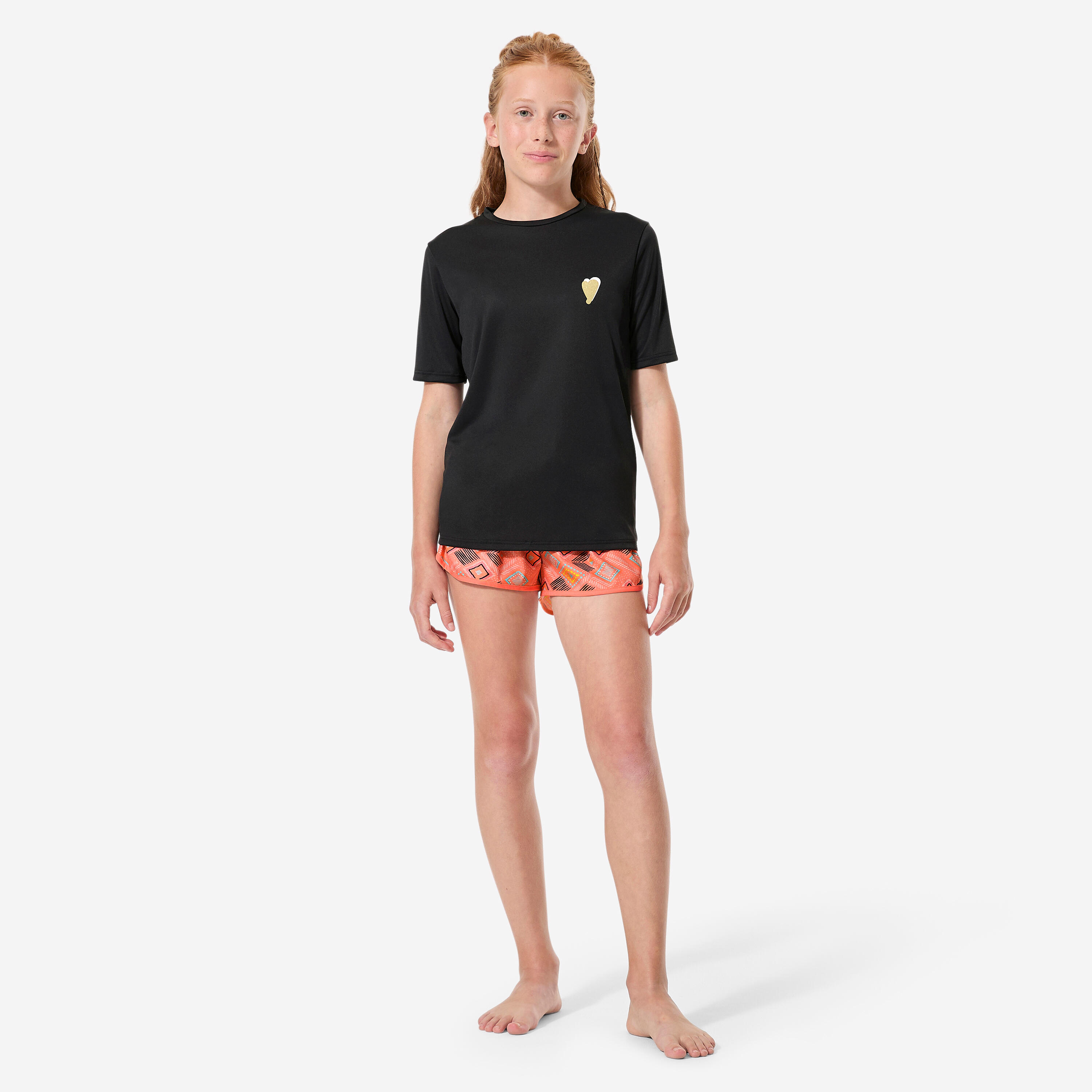 1 ura: občasna aktivnost. Lahko izberete ohlapen kroj (omogoča lažje oblačenje in udobje, ko je majica suha) ali oprijet kroj (omogoča večje udobje, ko je majica mokra). Zanka za pritrditev na plavalne kratke hlače omogoča, da ostane na svojem mestu.