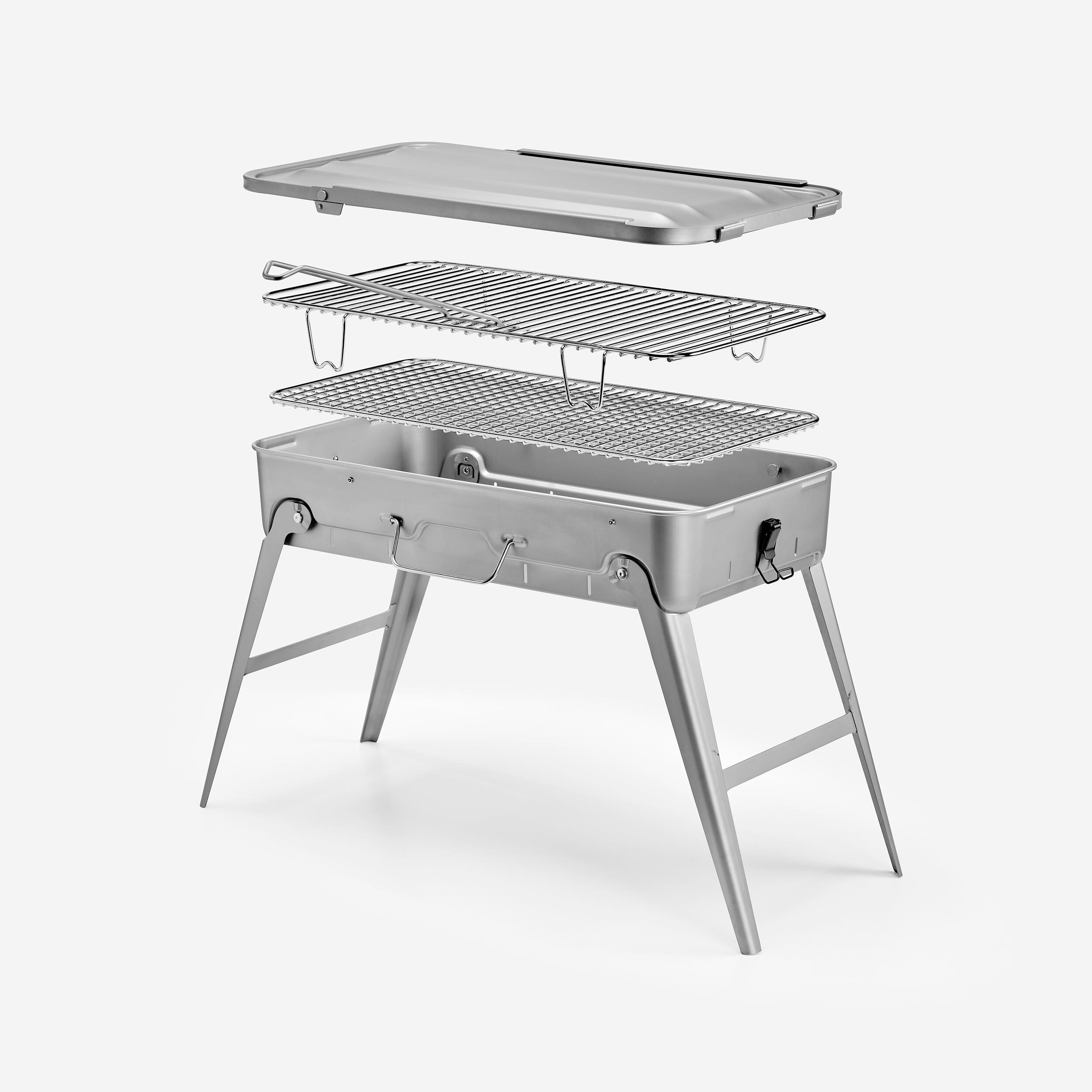 Po kuhanju vročo rešetko očistite z žično krtačo. Žar operite z vročo milnico in mehko gobico ali krtačo, ki je primerna za odstranjevanje trdovratnih ostankov. Odstranljiv pladenj omogoča enostavno odstranjevanje žerjavice. Žar je v celoti izdelan iz nerjavečega jekla.